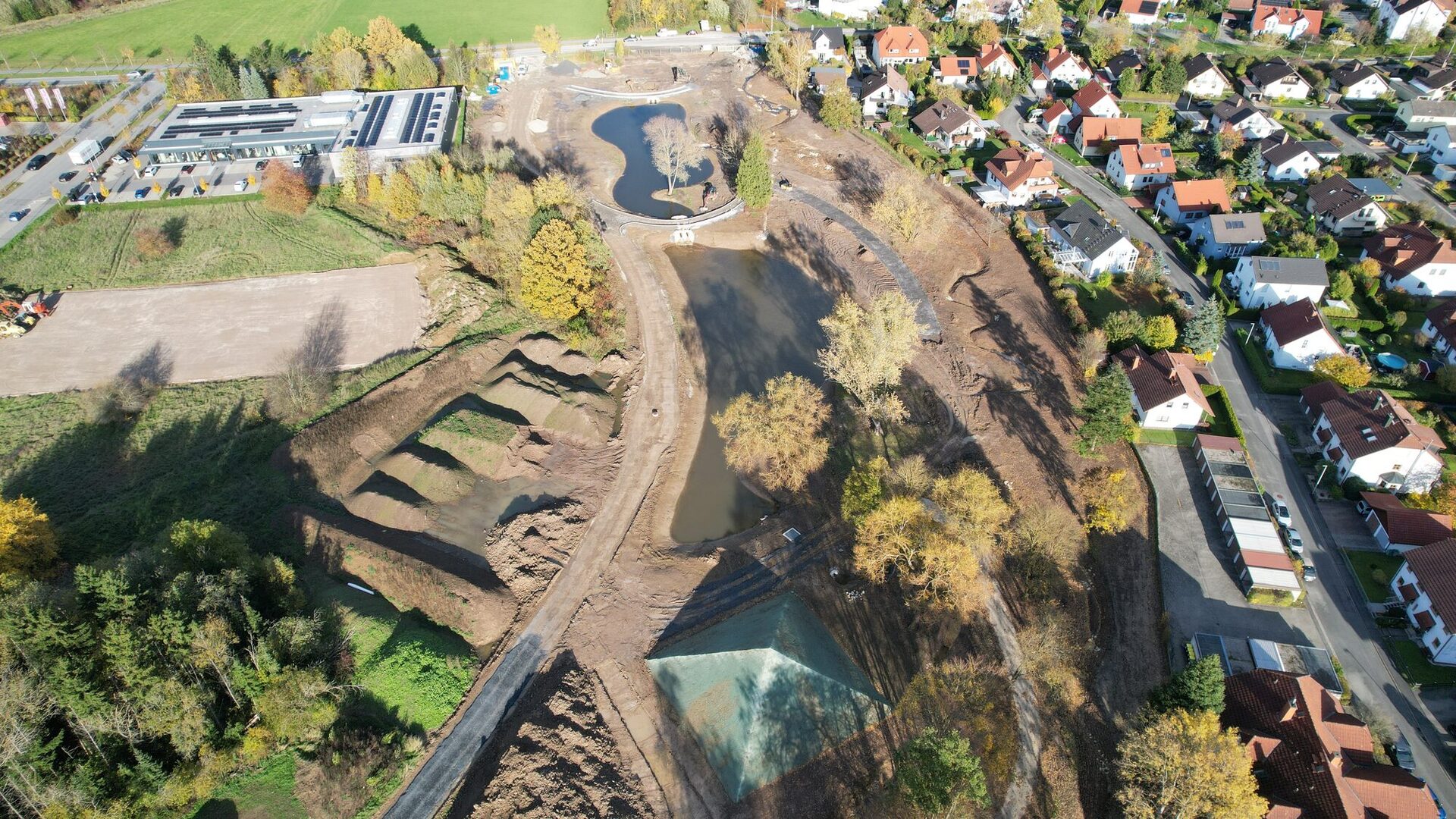 4. Juli 2025: Oberbodenmieten + Aufstandsfläche der quadratischen Pyramide (gekalkt)17. Juli 2025: Der Aufbau der quadratischen Erdpyramide beginnt.17. Juli 2025: Zu erhaltender Baumbestand mit Baumschutzzaun26. August 2025: Überblick Park der Arten, Teilbereich West und Mitte4. September 2025: Überblick Park der Arten, Teilbereich Ost: Quadratische Pyramide wird geformt.4. September 2025: Siebanlage für den Oberboden im Einsatz: Große Wurzelstücke, Grobmaterial, Steine und bodenferne Bestandteile (Kunststoff, Glas, etc.) wurden abgesiebt. Der gesiebte Oberboden ist für den Wiedereinbau vorgesehen.19. September 2025: Oberboden ist gesiebt, Quadratische Pyramide ist geformt.2. Oktober 2025: Die quadratische Pyramide spiegelt sich im Teich 2.30. Oktober 2025: Überblick Park der Arten, Teilbereich West und Mitte: Oberboden im Teilbereich West modelliert, Teilbereich Mitte: Dreifelderwirtschaft gepflügt, Oberbodenauftrag (Abflachung der Böschung) an Garden City Straße vollzogen30. Oktober 2025: Überblick Park der Arten, Teilbereich Ost: Die Teiche sind mit Wasser beaufschlagt, die quadratische Pyramide hat eine Anspritzbegrünung erhalten.13. November 2025: Überblick Park der Arten, Teilbereich Ost: Die Teiche sind mit Wasser beaufschlagt, die quadratische Pyramide hat eine Anspritzbegrünung erhalten, der Wegebau nimmt Fahrt auf, der Rottenbach ist renaturiert.27. November 2025: Überblick Park der Arten, Teilbereich Ost: Die Teiche sind mit Wasser beaufschlagt, die quadratische Pyramide hat eine Anspritzbegrünung erhalten, der Wegebau nimmt Fahrt auf, im renaturierten Rottenbach fließt Wasser, die Sandbiotope sind hergestellt.