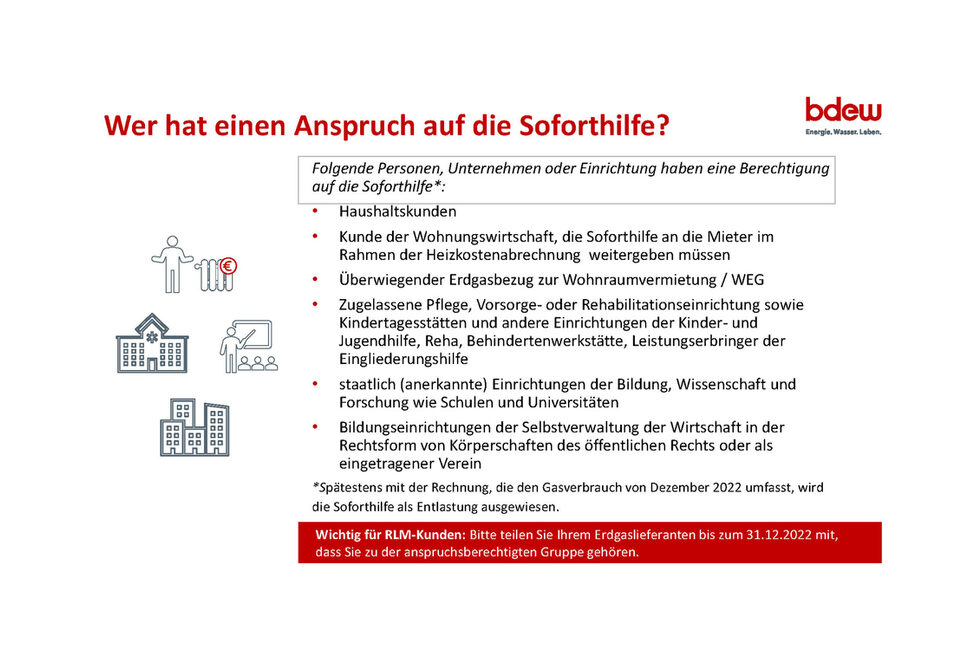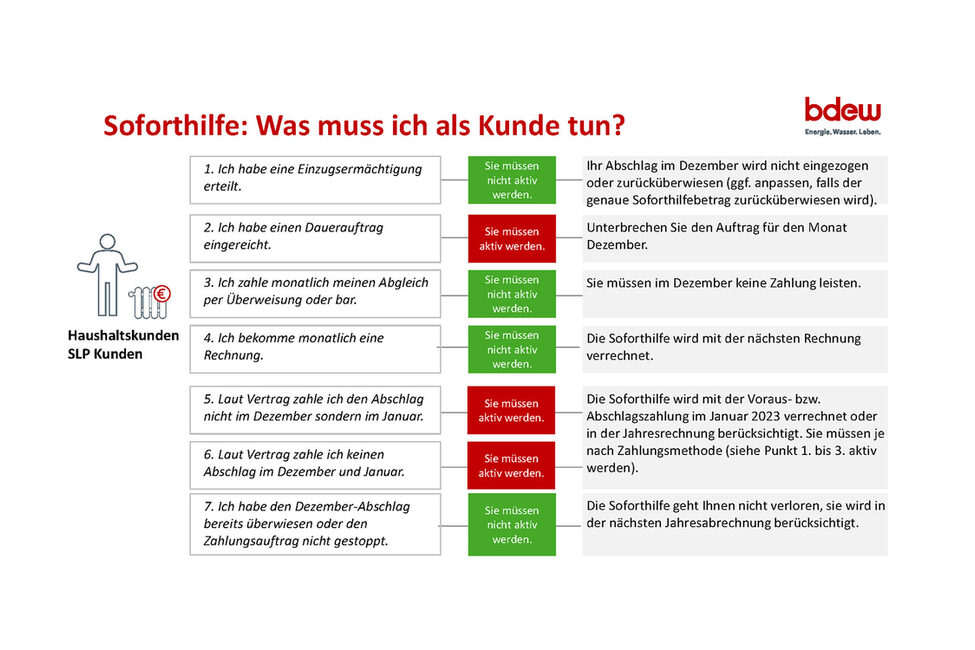 Je nachdem wie Sie ihre Gas- oder Fernwärmerechnung bezahlen, werden die Hilfen verrechnet. Die folgenden Schaubilder helfen Ihnen dabei herauszufinden, ob dies bei Ihnen automatisch erfolgt.
