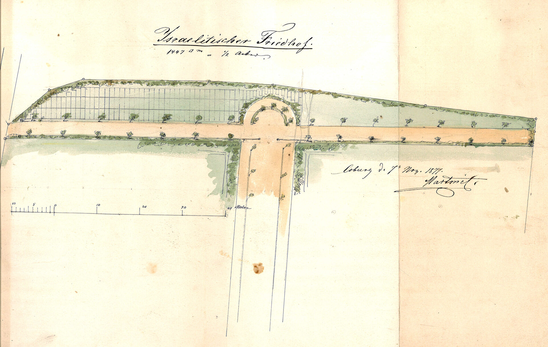 עקב זאת, בשנת 1870, ביקשו היהודים שהגיעו לאחרונה לקובורג מהעיר להקים בית קברות משלהם ממזרח לבית הקברות העירוני בגלוקבנרג. בשנת 1873 לאחר קבלת אישור רשמי, רכשה הקהילה היהודית את הקרקע בשנת 1873, תמורת תשלום, הורשו היהודים גם להשתמש בבית המתים ובעגלת המתים.