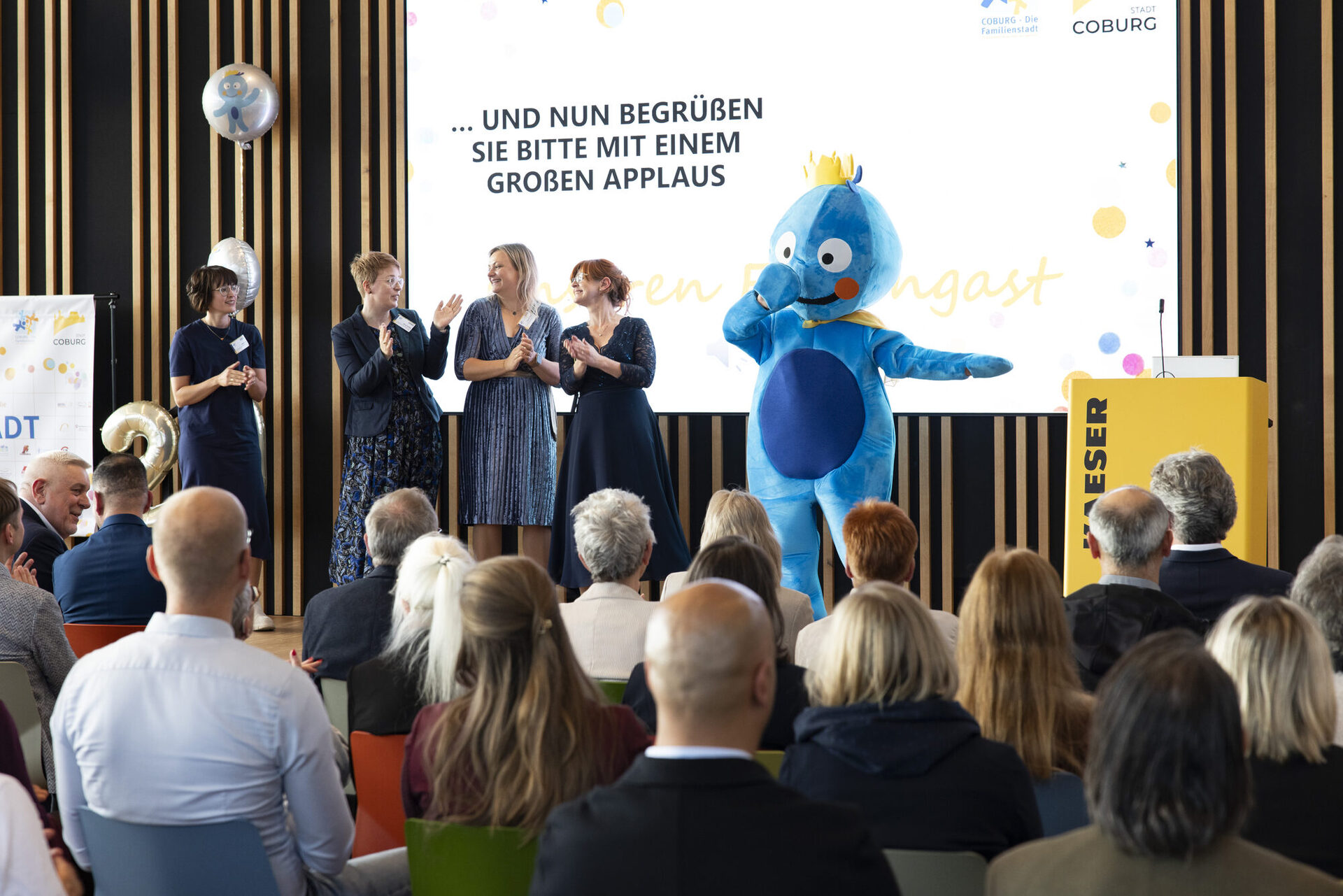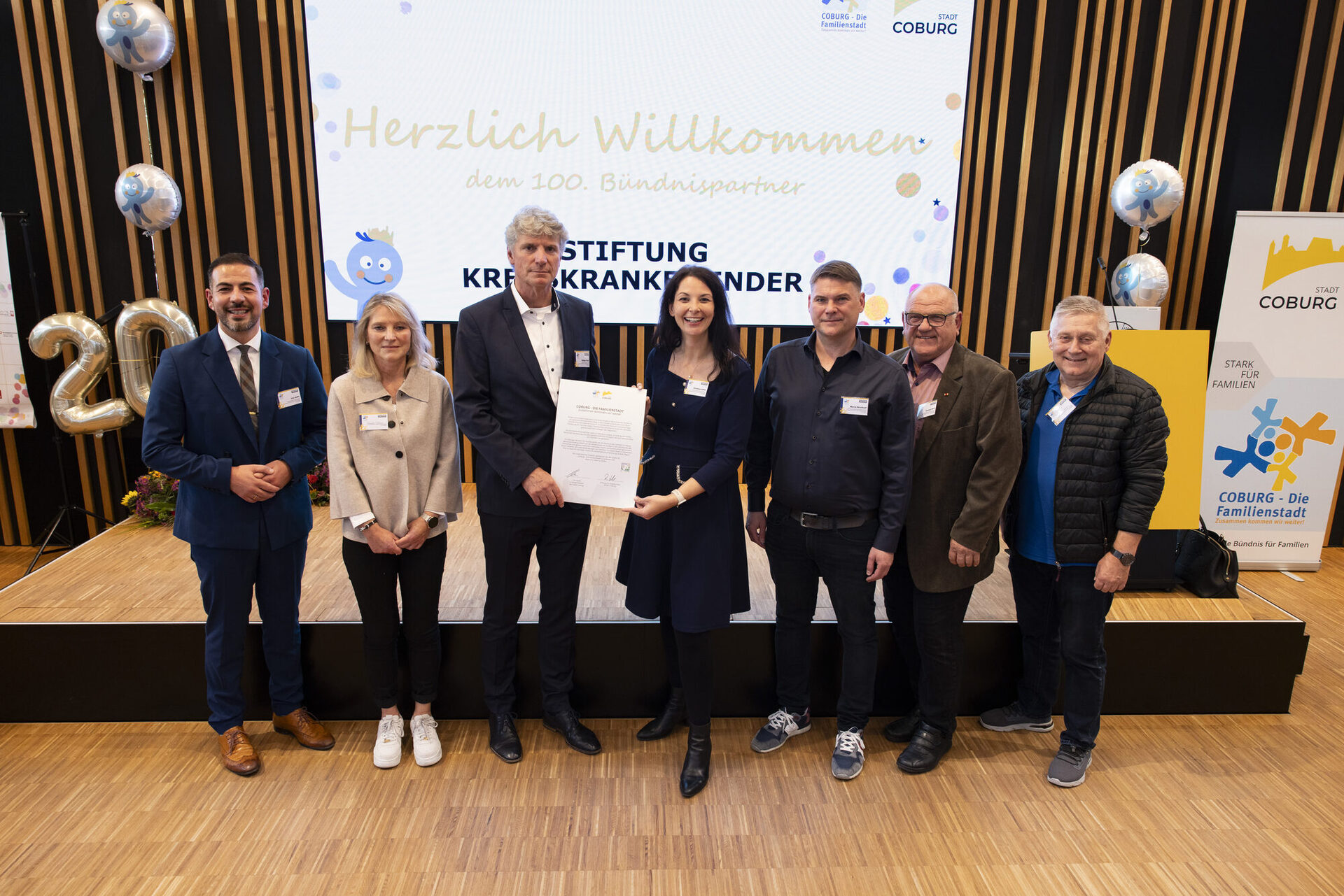 Ein besonderes Highlight des Abends war der Auftritt des Maskottchens Büni, das für Spaß und gute Laune sorgte und alle Gäste begeisterte. Ein weiterer feierlicher Moment: die Unterzeichnung des 100. Bündnispartners, ein Meilenstein für das Netzwerk und ein Zeichen für das kontinuierlich wachsende Engagement für Familien in Coburg: Dieses Netzwerk lebt – und wächst weiter.