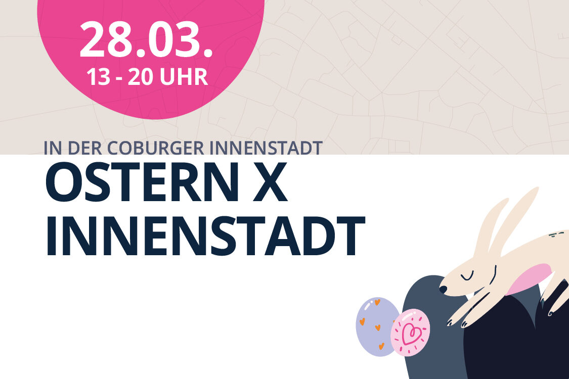 Am Samstag, 28. März, laden die Stadtmacher von 13 bis 20 Uhr erstmals zu „Ostern X Innenstadt“ ein. Die Coburger Innenstadt verwandelt sich dabei in eine frühlingshafte Erlebniswelt mit Osteraktionen in den Geschäften, kulinarischen Pausen in Cafés und Restaurants sowie einem abwechslungsreichen Programm für Groß und Klein.