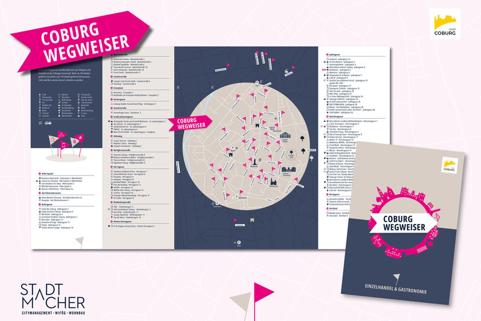 Zwei Ausgaben gibt es bereits in dieser Wegweiser-Reihe der Stadtmacher, einen explizit für die Nahversorgung in der Coburger Innenstadt und einen, der alljährlich zu Pfingsten - vor allem für Touristen und Coburg Besucher - erscheint.