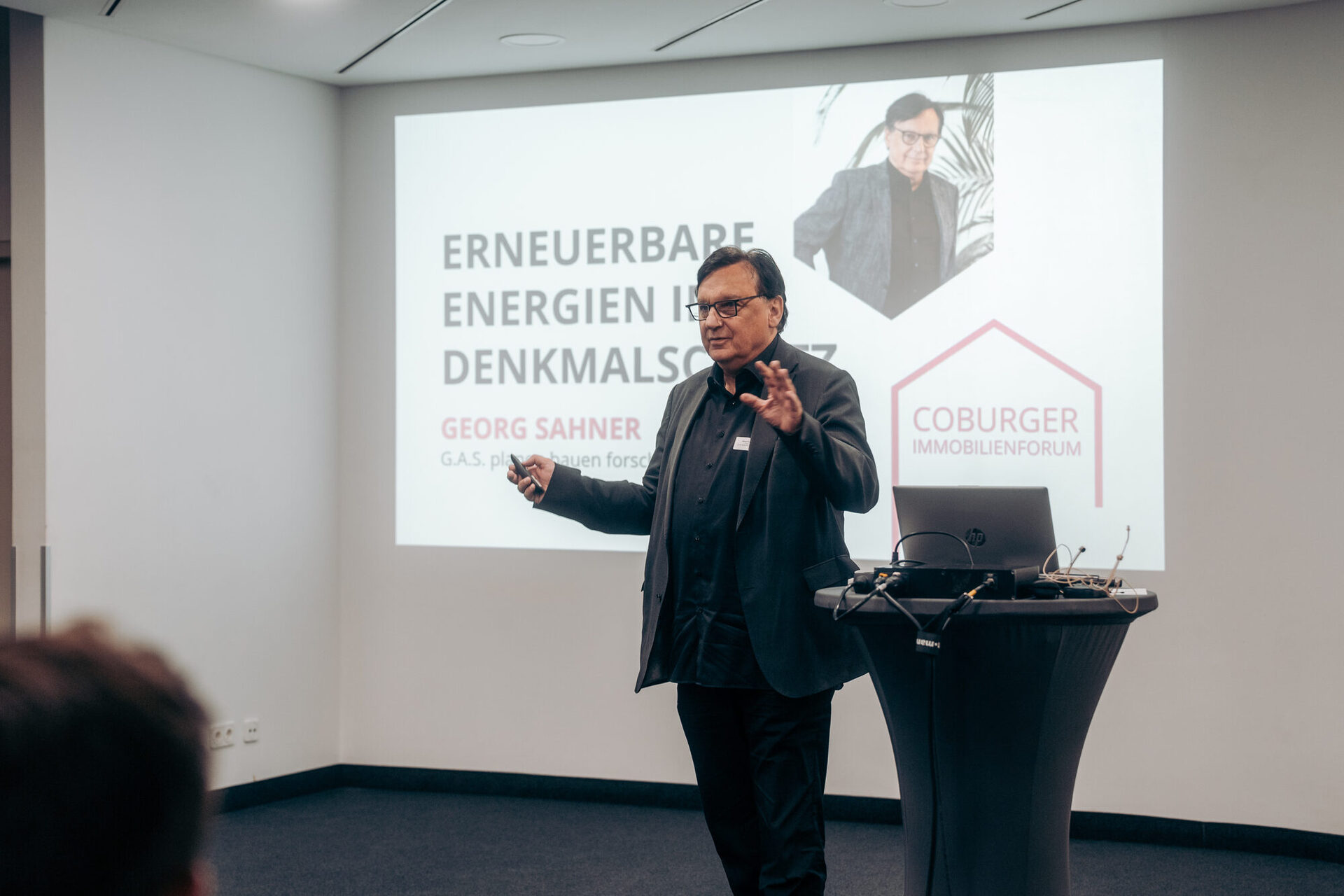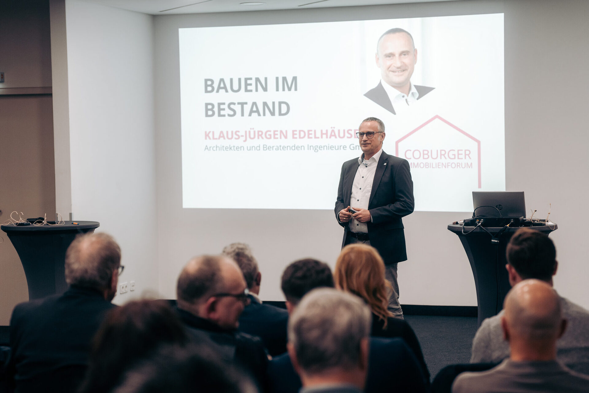 Die Veranstaltung bot ein abwechslungsreiches Programm mit hochkarätigen Fachvorträgen. Silke Neumann präsentierte praxisnah das kommunale Förderprogramm für Sanierung und Modernisierung. Dipl.-Ing. Klaus‑Jürgen Edelhäuser stellte unter dem Motto „Baukultur bewahren, verwandeln und erschaffen: Bauen im Bestand“ die Chancen und Herausforderungen der Revitalisierung bestehender Immobilien vor. Prof. Dr.-Ing. Georg Sahner beleuchtete den Einsatz Erneuerbarer Energien und Photovoltaik, insbesondere im Spannungsfeld von Denkmalschutz und modernem Energiemanagement. Spannend war hier vor allem der konkrete Praxisbezug für Immobilen in der Coburger Innenstadt, da Prof. Dr. Sahner das Kommunalen Denkmalkonzepts (Solar-Rahmenplanung) für die Stadt Coburg mitverantwortet.