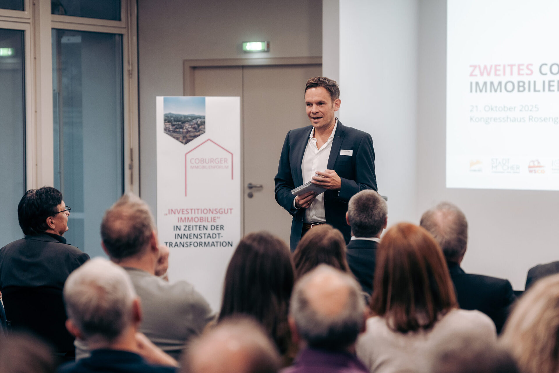 Moderiert wurde das Forum von ARD-Moderator Christian Limpert, der die Vorträge einleitete und die Diskussionen mit dem Publikum charmant leitete. Die hohe Teilnehmerzahl und das durchweg positive Feedback zeigten deutlich: Das Coburger Immobilienforum verbindet fachliche Expertise mit praxisrelevanten Einblicken und bietet damit sowohl informative als auch inspirierende Impulse für die Immobilienbranche in Coburg.