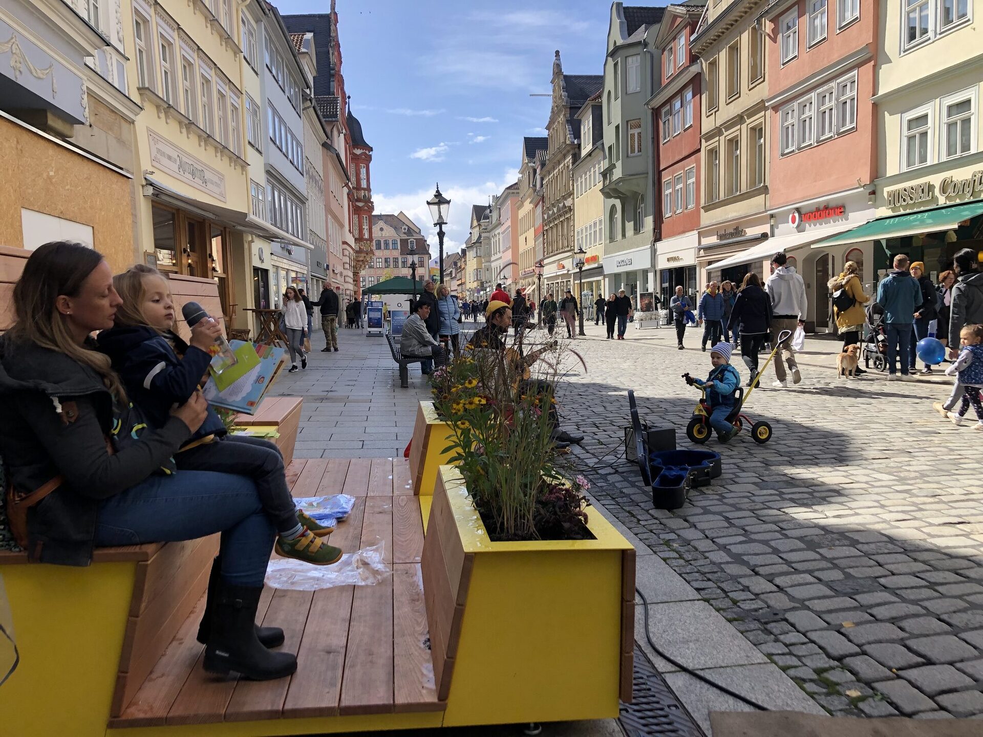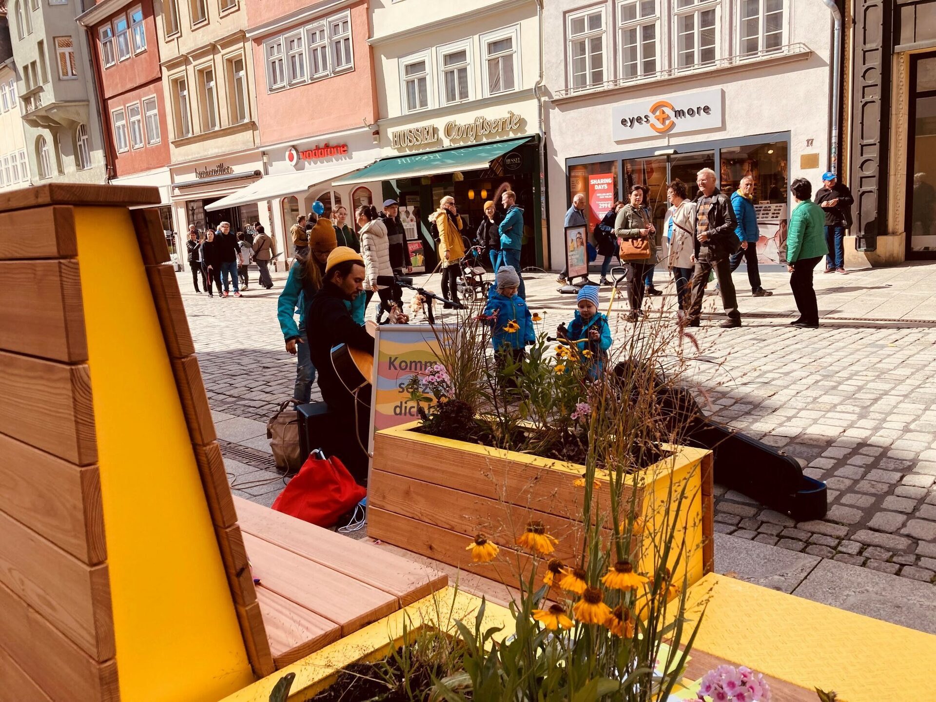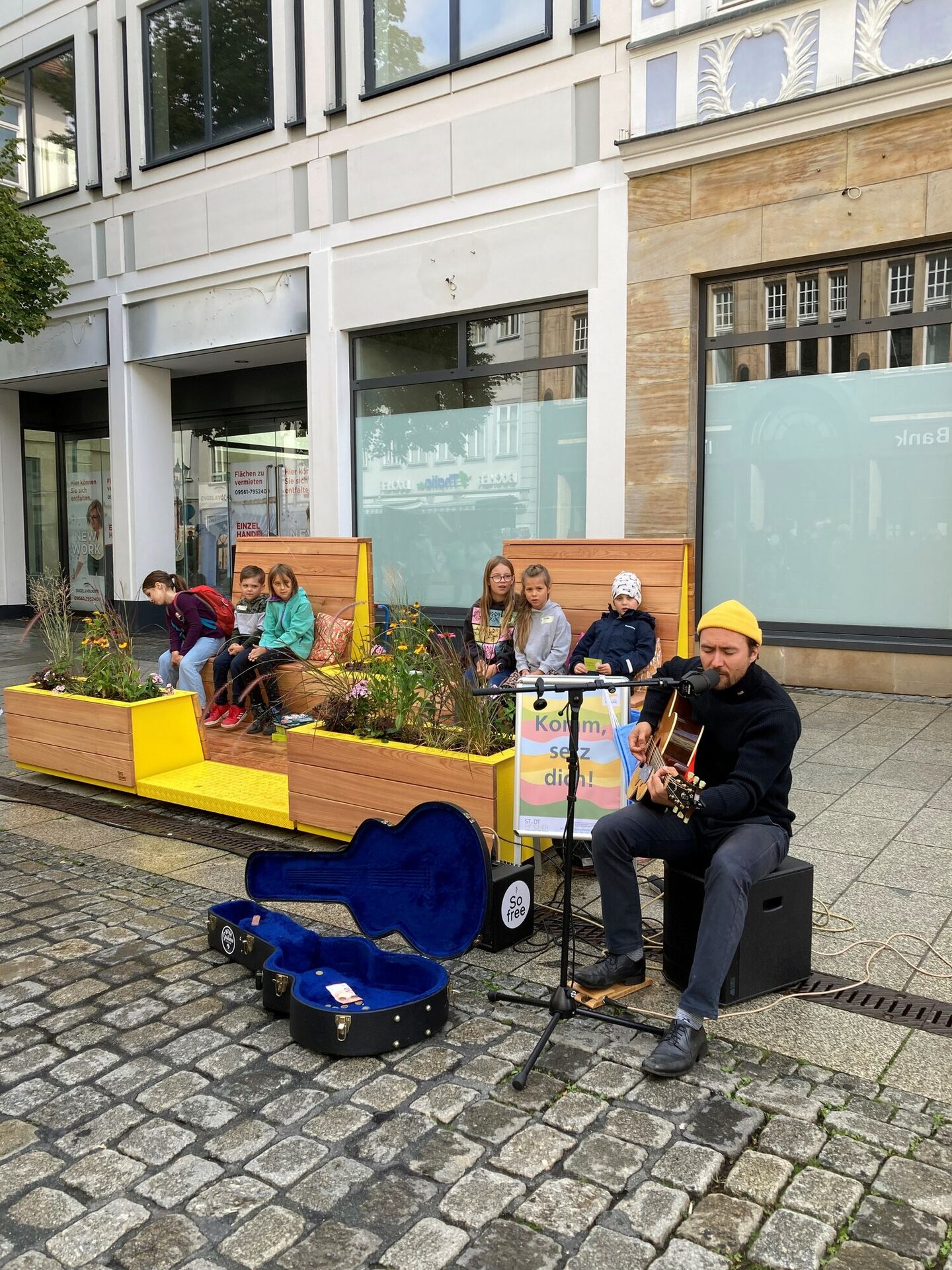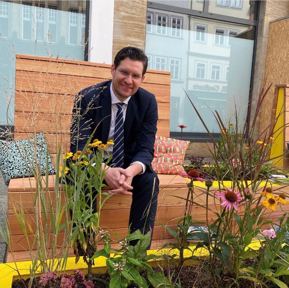 Die schönen und funktionalen Eyecatcher kommen erstmals in der Spitalgasse zum Einsatz: der Musiker Maverin begleitet das erste „Sit On“ musikalisch. Anliegende Händler:innen beteiligen sich außerdem mit kleineren Aktionen: es gibt eine Leseecke und Bastelaktionen von Thalia, der Master Butcher bietet Co-Burger für Coburger:innen – als besonderes Mittagsmenü mit Original Coburger Bratwurst. Gutscheine für ein kleines Eis oder einen Slush und kleine Süßigkeiten-Päckchen steuert Hussel für die ersten Probesitzer:innen bei. Mit den kuscheligen Sitzkissen, genäht von Brinarina, lassen sich die neuen Möbel außerdem gleich noch bequemer Testen.