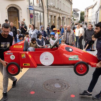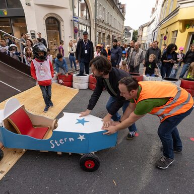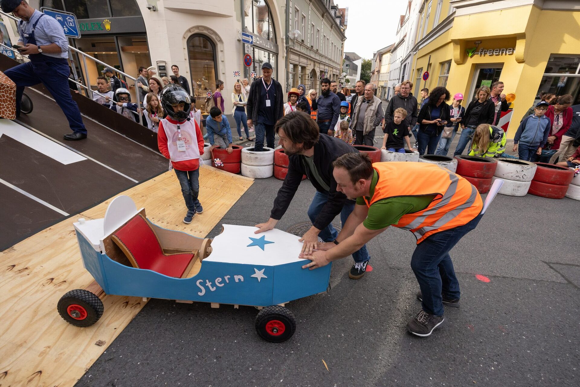Ursprünglich als Vorprogramm zum Verkaufsoffenen Sonntag gedacht, wurde das „Seifenkisten-Revival“ organisiert von den „Stadtmachern“ zum Event-Highlight des Jahres für die Coburger Innenstadt.