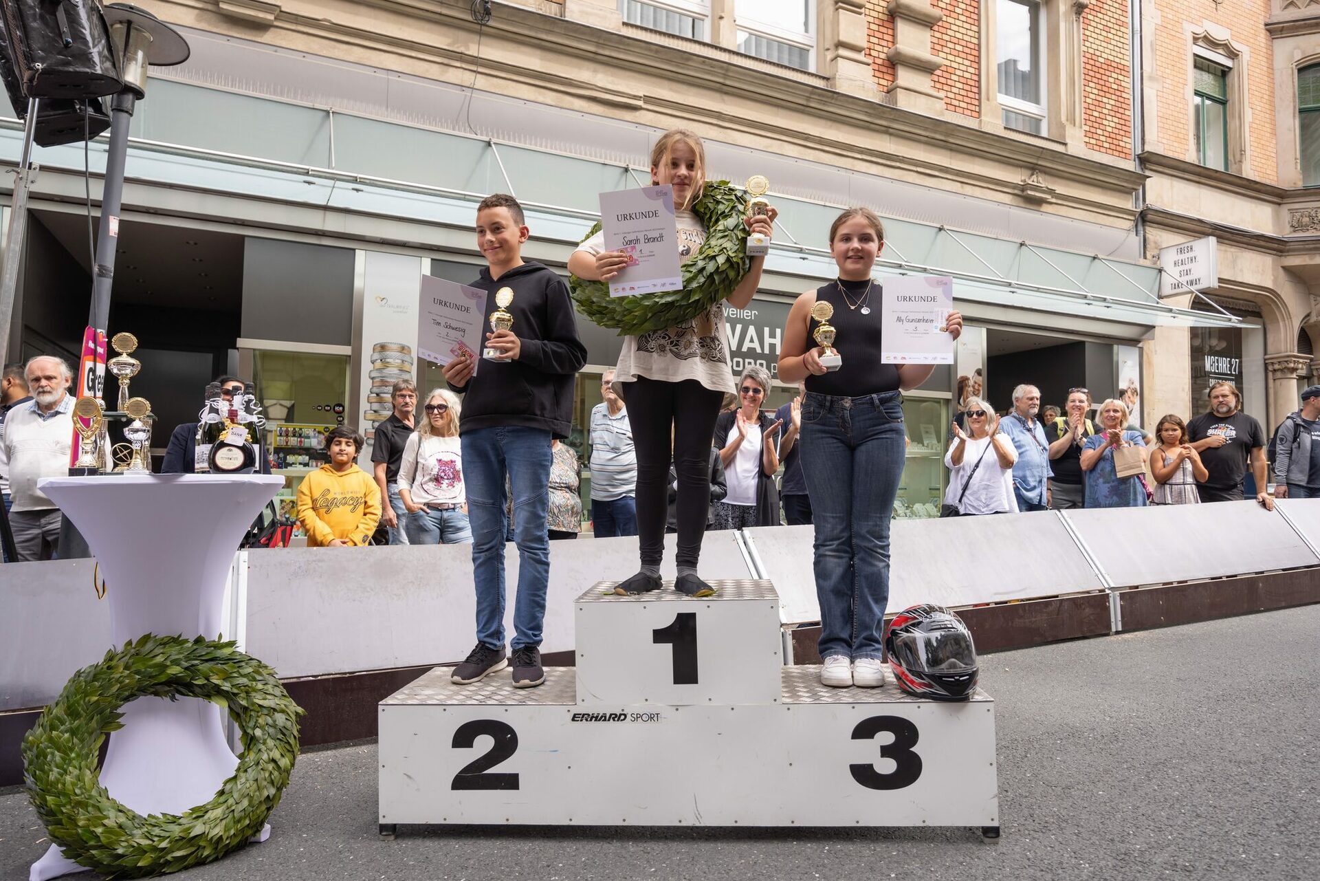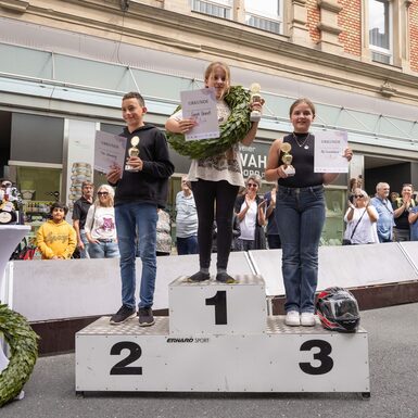 Die Erstplatzierten jeder Rennklasse bekamen aufwendig gesteckte Lorbeer-Siegerkränze und wie die Zweit- und Drittplatzierten Pokale und Urkunden. Doch auch alle anderen Starter bekamen Medaillen für ihre großartige Leistung. Und noch mehr Menschen hätten eine Medaille verdient, denn eine Veranstaltung wie diese steht und fällt mit der Manpower und dem Know-How der Unterstützer und Sponsoren.