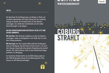 Als Geschenk für die Bürgerinnen und Bürger in Stadt und Landkreis übernehmen die Stadt Coburg und der Landkreis Coburg auch in diesem Jahr die Kosten für Busfahrten an den Adventssamstagen.