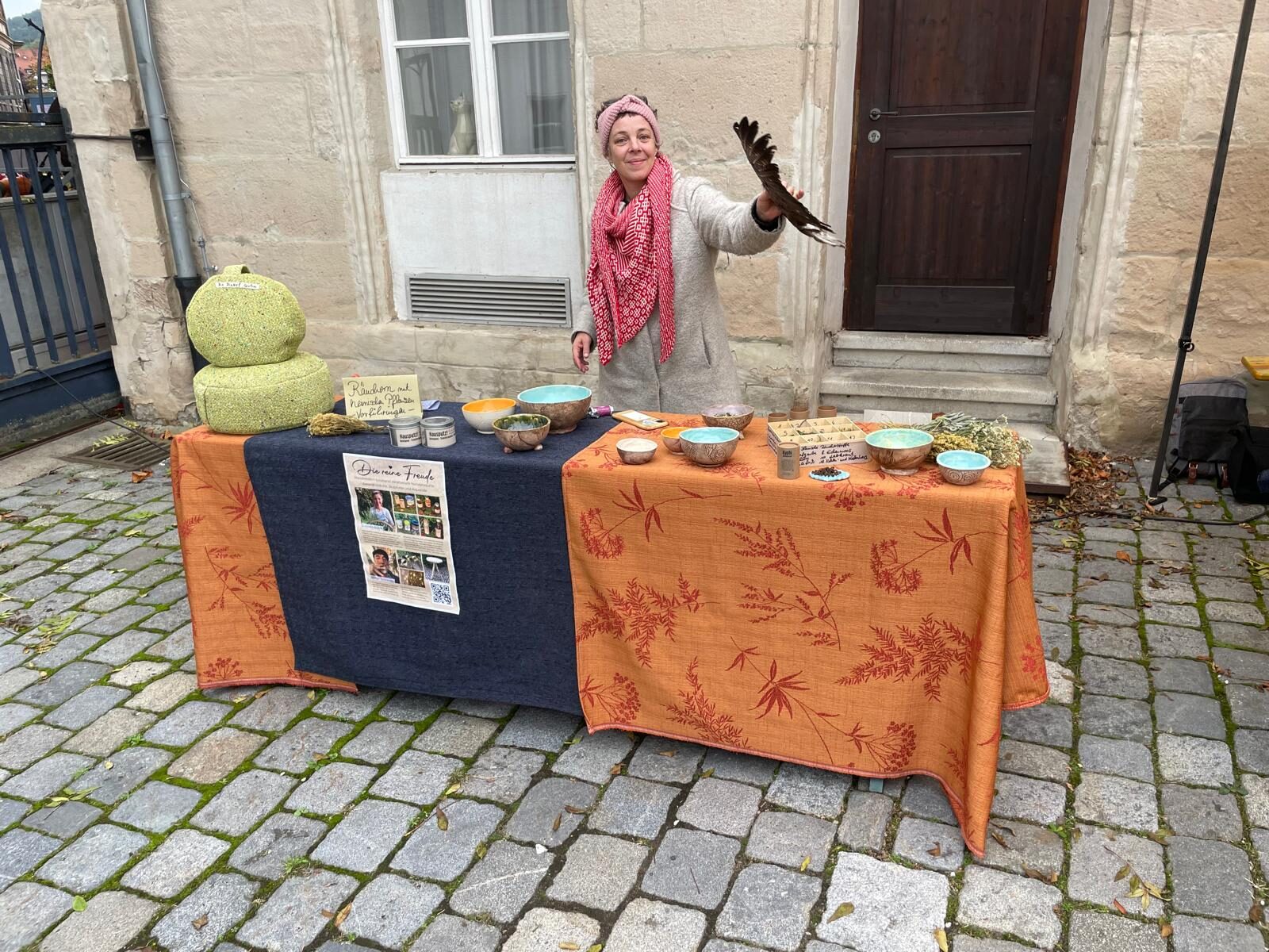 handgemachte Räuchermischungen, Kräuter-Oxymel, Kräutersalze und Blütensirup sowie Workshops rund um Wildpflanzen, Räuchern zu verschiedenen Anlässen und Fermentieren / Kurse rund um klimafreundliches Kochen.
