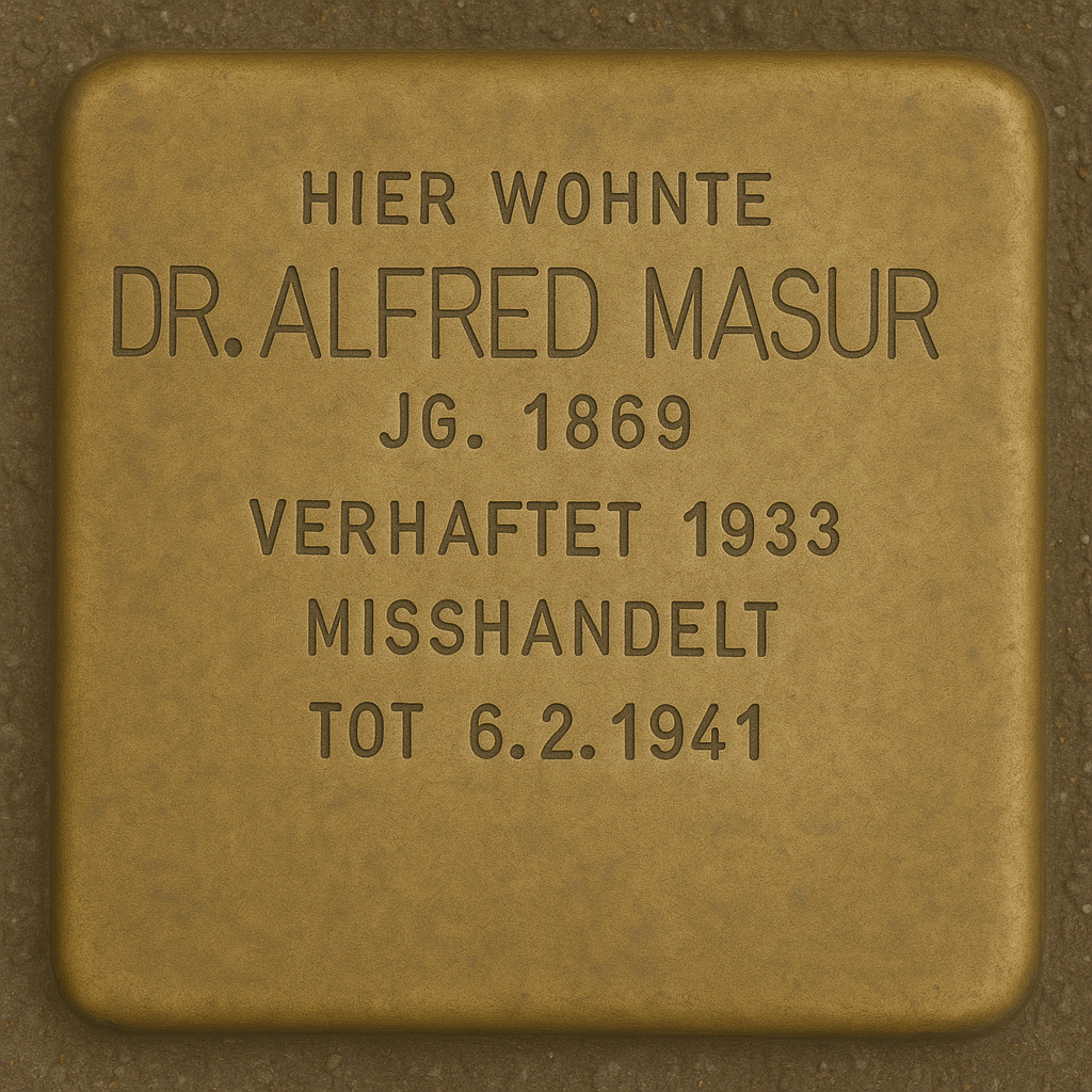Seit 1934 lebte Alfred Masur ohne geregeltes Einkommen gemeinsam mit seiner Schwester Helene im Haus der jüdischen Familie Zeilberger in der Coburger Steinwegstraße 16.[41] Seine Ehefrau Emmy war bereits 1931 verstorben.[42] In dieser Zeit war Masur weiterhin Vorsitzender der israelitischen Kultusgemeinde Coburg, obwohl seine Handlungsspielräume durch politische Repression stark eingeschränkt waren.