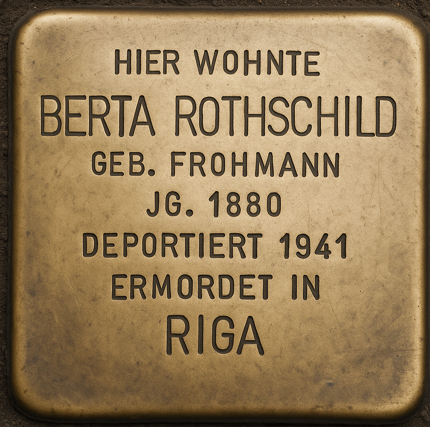 Der weitere Verbleib von Berta Rothschild ist nicht durch zeitgenössische Dokumente gesichert. Zeugenaussagen deuten darauf hin, dass sie und ihr Ehemann am 26. März 1942 im Rahmen der sogenannten „Aktion Dünamünde“ ermordet wurden.[29] Ein genaues Todesdatum ist nicht überliefert. Bei dieser Aktion wurden etwa 1.900 jüdische Menschen erschossen.