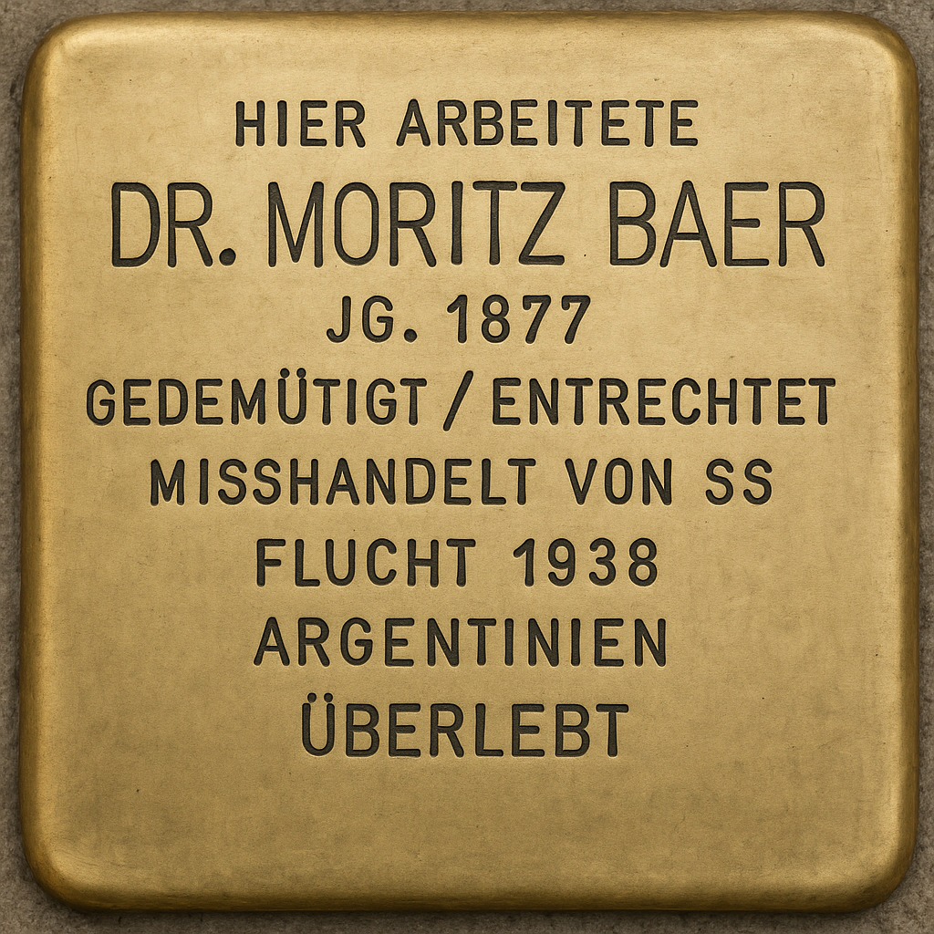 Unter dem Eindruck der zunehmenden Entrechtung und Verfolgung jüdischer Bürger im nationalsozialistischen Deutschland entschloss sich Moritz Baer im Jahr 1938 gemeinsam mit seiner Ehefrau Käthe, Deutschland zu verlassen. Ihre Entscheidung fiel in eine Zeit, in der antisemitische Gewaltakte und gesetzlich legitimierte Ausgrenzung jüdischer Menschen dramatisch zunahmen. Bereits zuvor waren ihre Kinder Max und Ruth in den Jahren 1936 bzw. 1938 nach Argentinien emigriert[38], während der älteste Sohn Bernhard bereits 1933 nach Spanien ausgewandert war.[39]