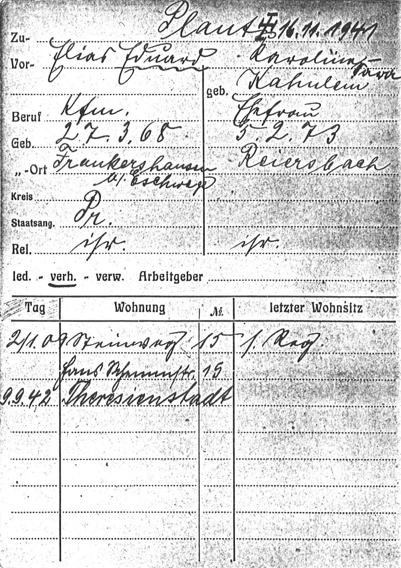 [1] Stadtarchiv Coburg, Einwohnermeldekartei, Plaut, Eduard und Karoline.
