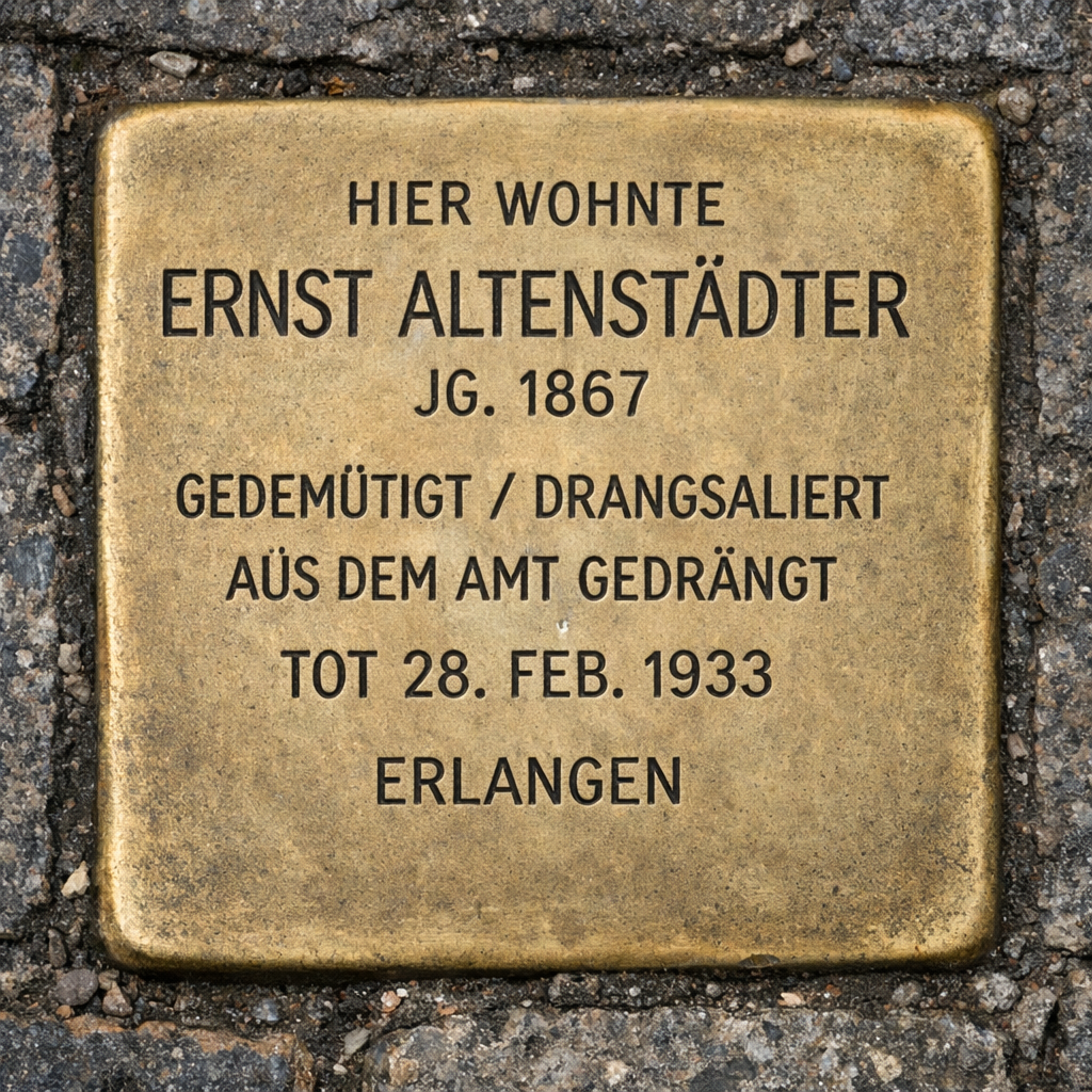 Während der Inflations- und Hyperinflationsphase bis 1923 war die Coburger Stadtverwaltung mit erheblichen finanziellen Belastungen konfrontiert. In dieser Zeit nahm Ernst Altenstädter im Rahmen seiner Zuständigkeiten im Finanzbereich Aufgaben wahr, die auf die Sicherung des städtischen Haushaltsvollzugs und die Begrenzung von Belastungen zielten.[16] Im Jahr 1923 beging er sein 25-jähriges Dienstjubiläum. Aus diesem Anlass sind Ansprachen und Würdigungen überliefert, auf die Altenstädter mit einer zurückhaltenden Stellungnahme reagierte: „So muss ich zunächst offen bekennen, dass mich ein Gefühl der Beschämung bewegt, weil ich mir nicht bewusst bin, so viel Ehrungen verdient zu haben. ‚Erkenne dich selbst‘ ist ein Grundsatz, den ich mir vor langen Jahren zu eigen gemacht habe und der mich bei einem Blick auf mich selbst immer wieder belehrt, dass das menschliche Können mit dem menschlichen Wollen nicht Schritt zu halten vermag.“[17]