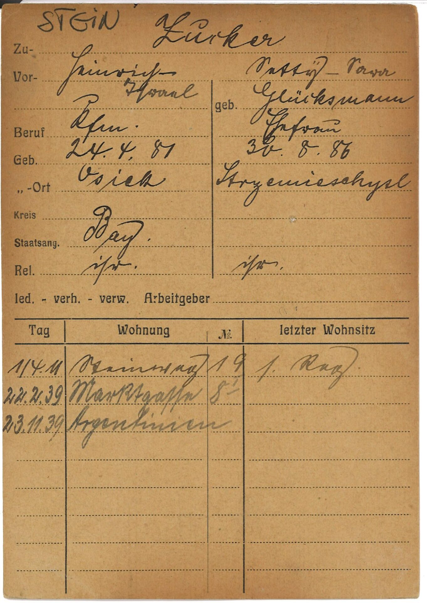 [19] Stadtarchiv Coburg: Einwohnermeldekarte Glücksmann, Adele.