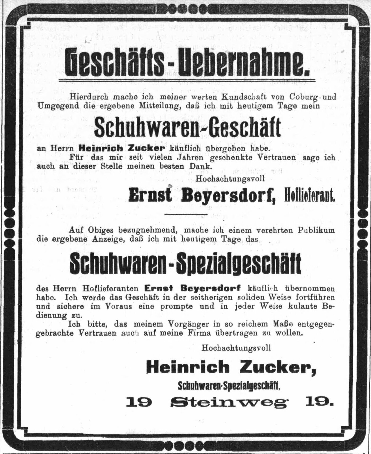 [15] „Coburger Zeitung“ vom 2. Juni 1911; Siehe auch: Adressbuch 1911, S.10.