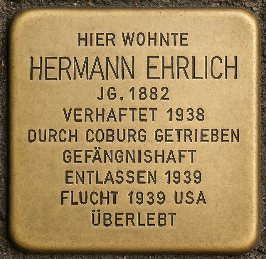 [1] Archivbuch Standesamt Römhild: Geburtsurkunde Hermann Ehrlich vom 21.August 1882 (Nr.27); Siehe auch: Stadtarchiv Coburg, Einwohnerkartei, Ehrlich, Hermann und Anna, geb. Sichel.