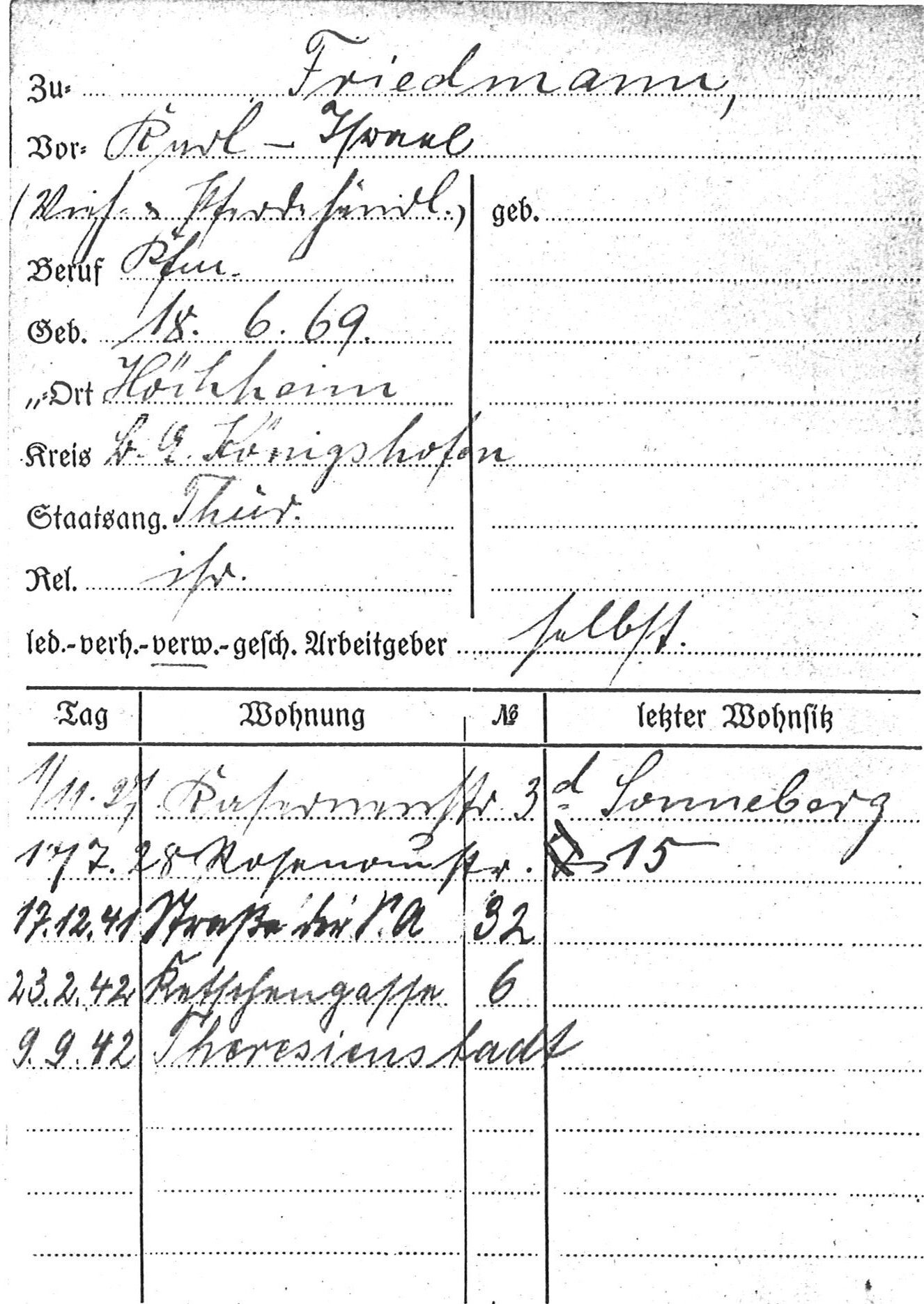 [1] Stadtarchiv Coburg, Einwohnerkartei, Friedmann, Karl.