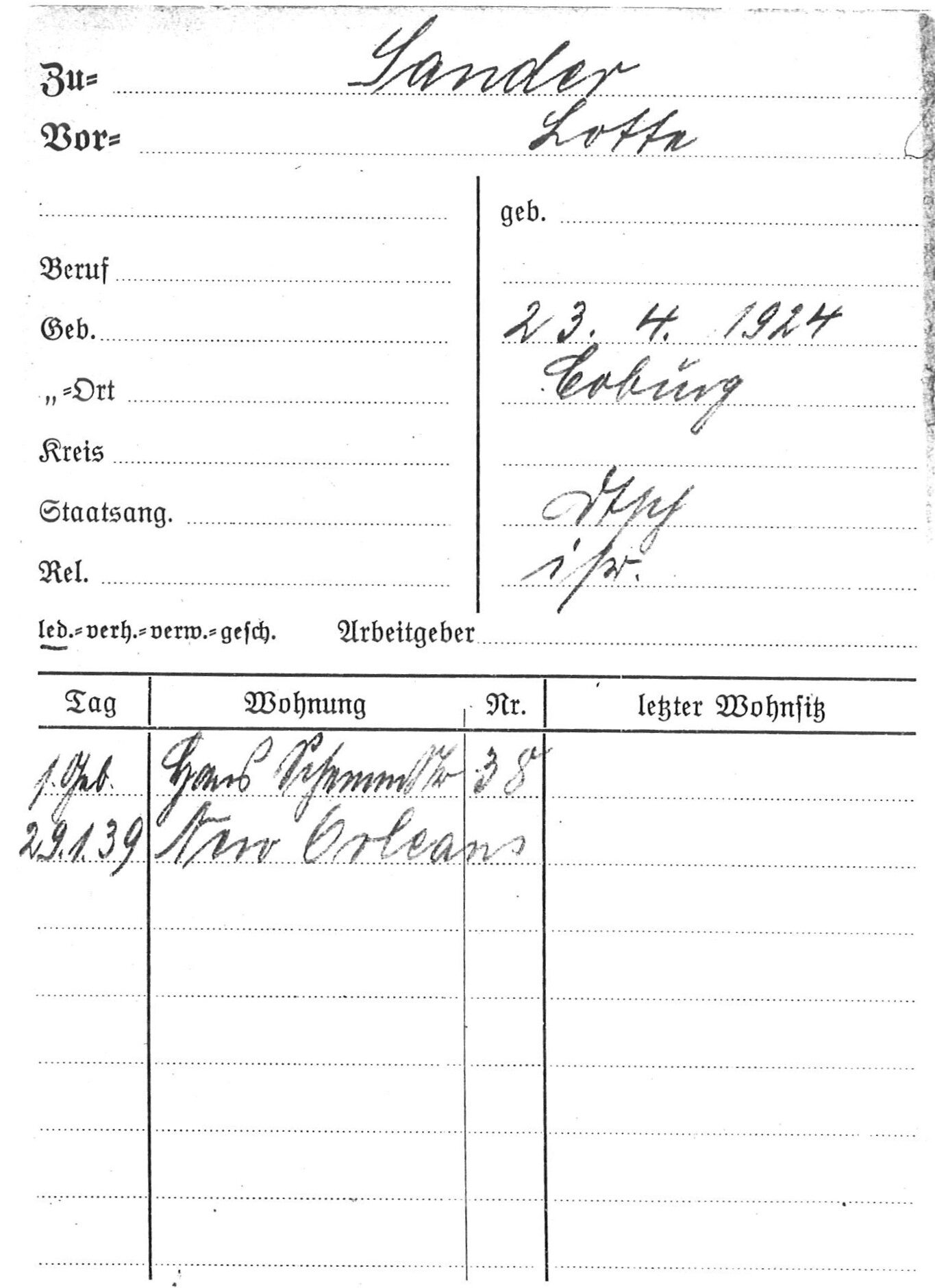 [1] Stadtarchiv Coburg: Einwohnermeldekarte Sander, Lotte.