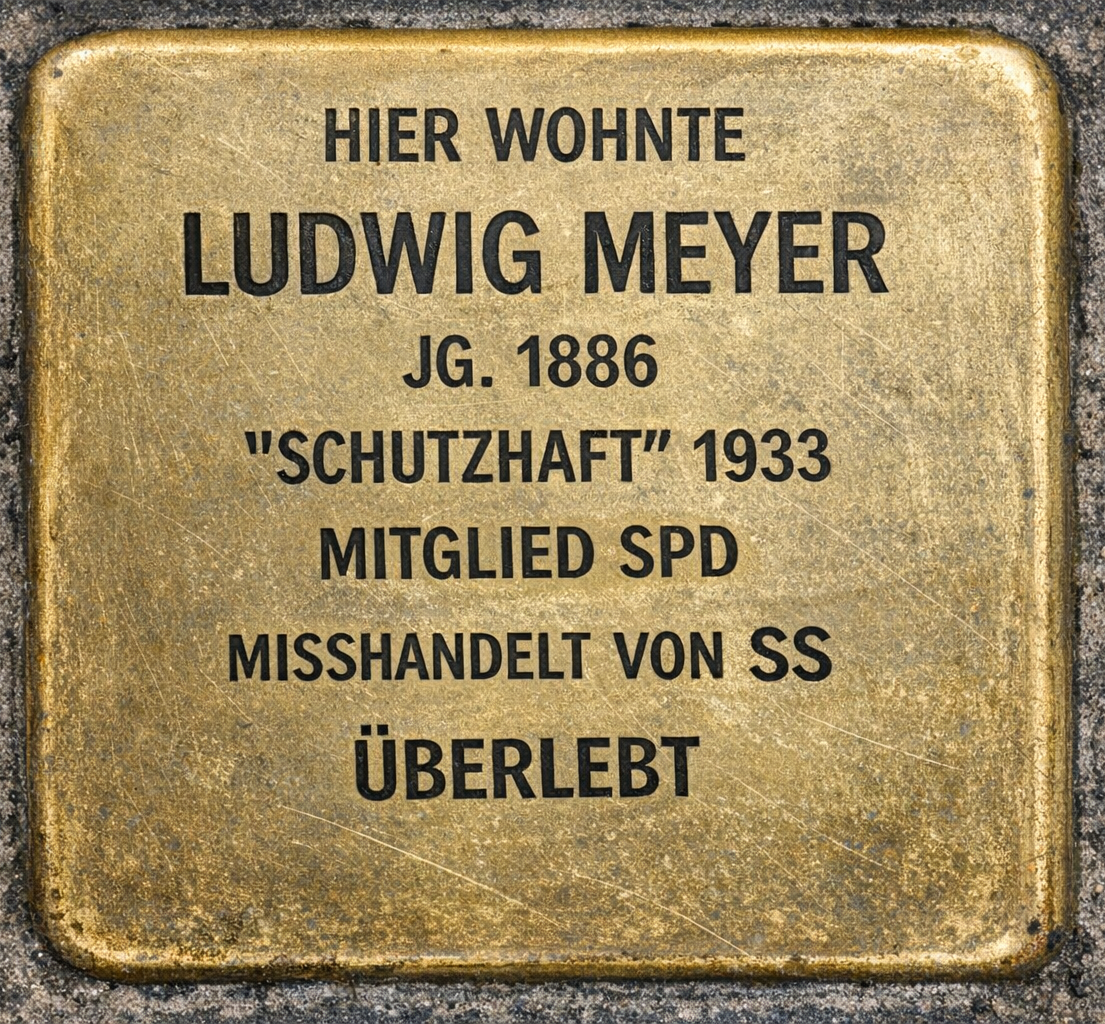 Ludwig Meyer verstarb 1957 nach langer Krankheit im Alter von 71 Jahren.[40] Sein Lebensweg spiegelt die politischen und sozialen Brüche Deutschlands in der ersten Hälfte des 20. Jahrhunderts in besonderer Weise wider. Als sozialdemokratischer Kommunalpolitiker stand er bereits in der Weimarer Republik der wachsenden Stärke des Nationalsozialismus gegenüber und wurde nach 1933 verfolgt, inhaftiert und wirtschaftlich ausgegrenzt. Nach 1945 beteiligte er sich unter den Bedingungen der amerikanischen Besatzung am demokratischen Wiederaufbau Coburgs und Bayerns. Seine Biografie steht damit exemplarisch für Kontinuität und Belastung demokratischen Engagements über Weimarer Republik, nationalsozialistische Diktatur und Nachkriegszeit hinweg.