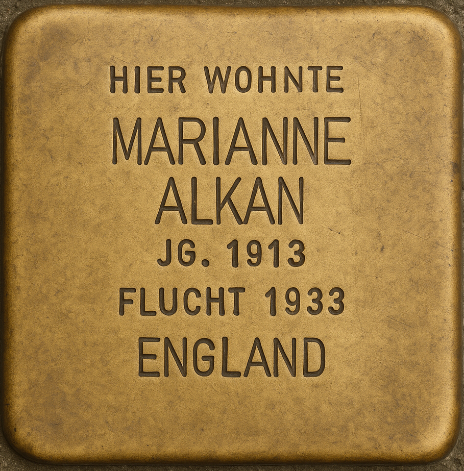 Die politische Entwicklung und insbesondere die berufliche Diskriminierung ihres Vaters hatten tiefgreifende Auswirkungen auf Marianne Alkan. Infolge dieser Ereignisse entschied sie sich, Deutschland zu verlassen. Mit Unterstützung ihrer Eltern emigrierte sie im August 1933 nach London.[6] Die Umstände ihrer Ausreise, etwa die Visabeschaffung, mögliche Unterstützung durch Hilfsorganisationen oder persönliche Kontakte, sind bislang nicht dokumentiert.
