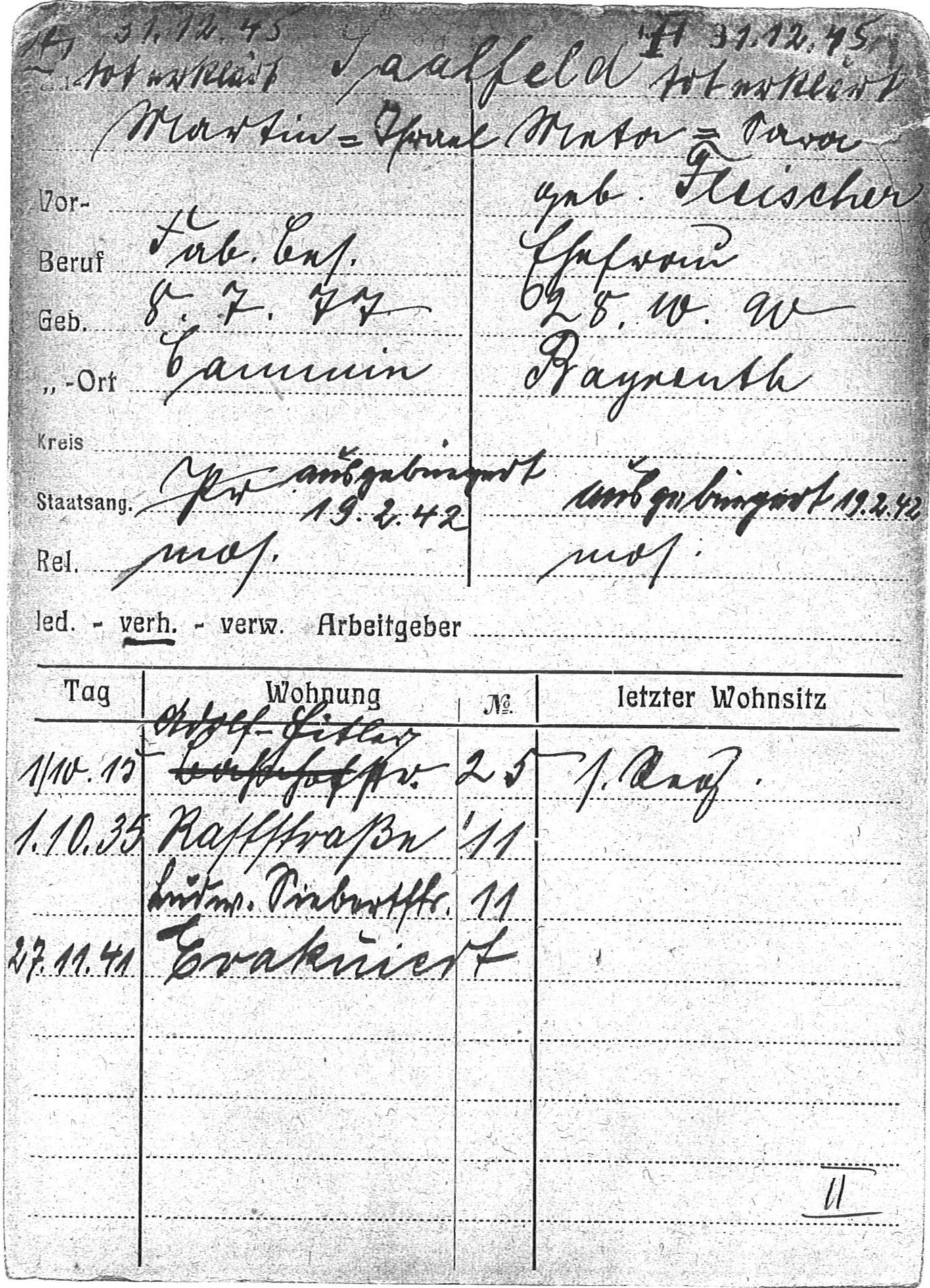 [22] Stadtarchiv Coburg, Einwohnerkartei, Saalfeld Martin und Meta.