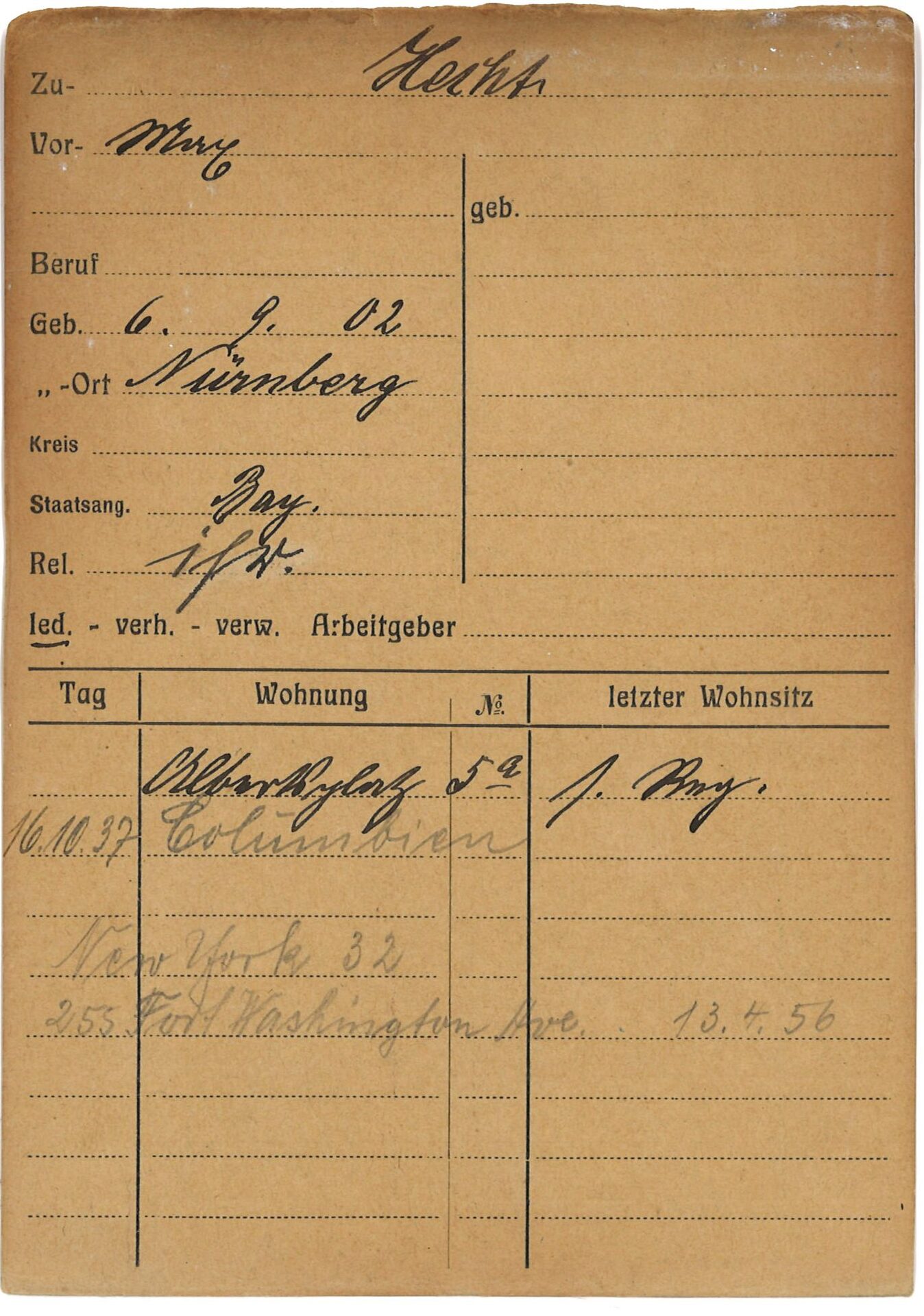[20] Ebd.; National Archives at St. Louis, Wwii Draft Registration Cards For New York City, 10/16/1940 - 03/31/1947; Aufzeichnungsgruppe: Records of the Selective Service System, 147.