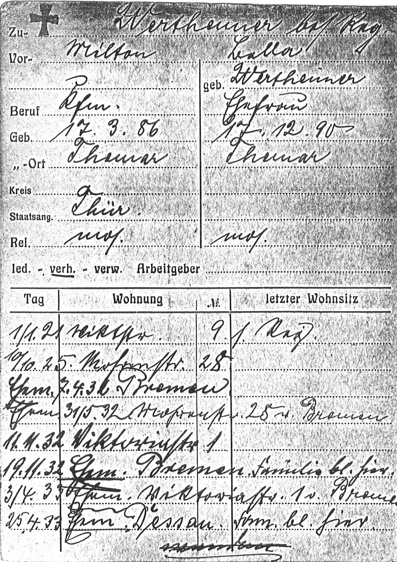 [1] Stadtarchiv Coburg, Einwohnerkartei, Wertheimer. Milton und Bella.