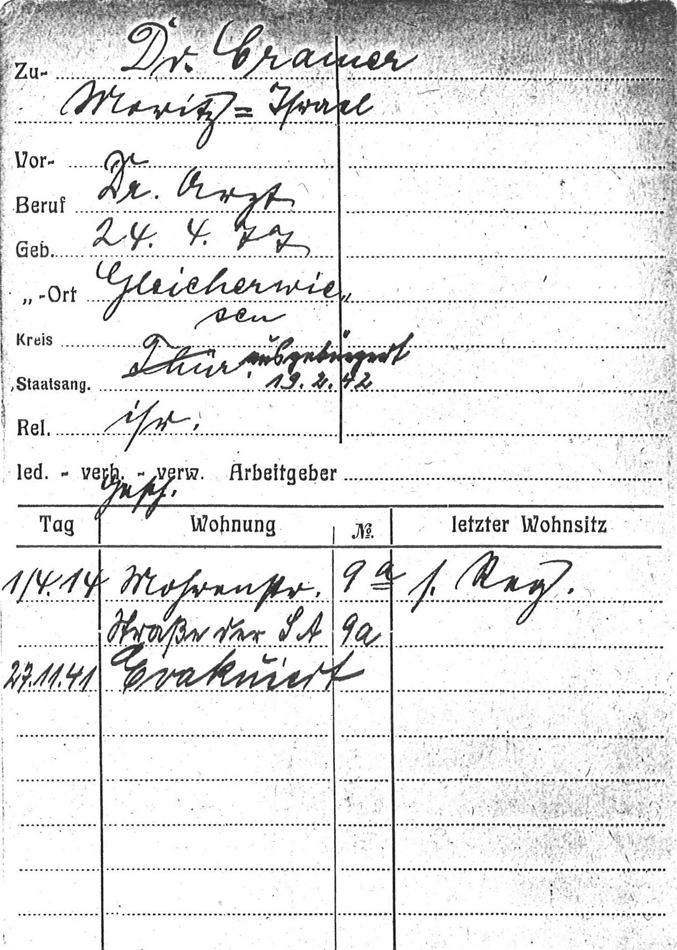 Einwohnermeldekarte von Dr. Moritz Cramer