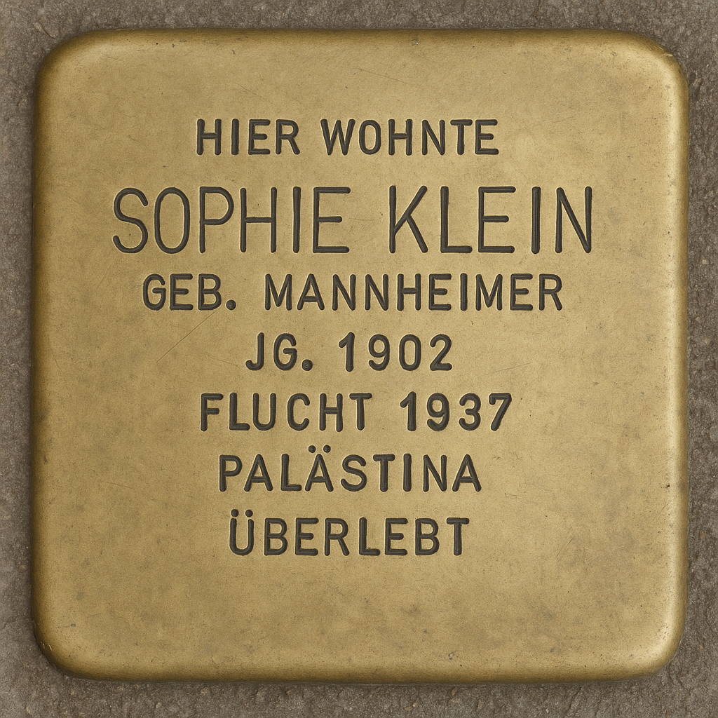 [40] Laut Angaben bei myheritge.com (https://www.myheritage.de/research/collection-1/myheritage-stammbaume?itemId=OYYV7ITPJIAQ2D6XSORVU3THUE6NWOI-1-500029&action=showRecord&recordTitle=Sophie+Klein+%28%D7%9C%D7%91%D7%99%D7%AA+Mannheimer%29 (Öffnet in einem neuen Tab)), aufgerufen am 23.10.2025.