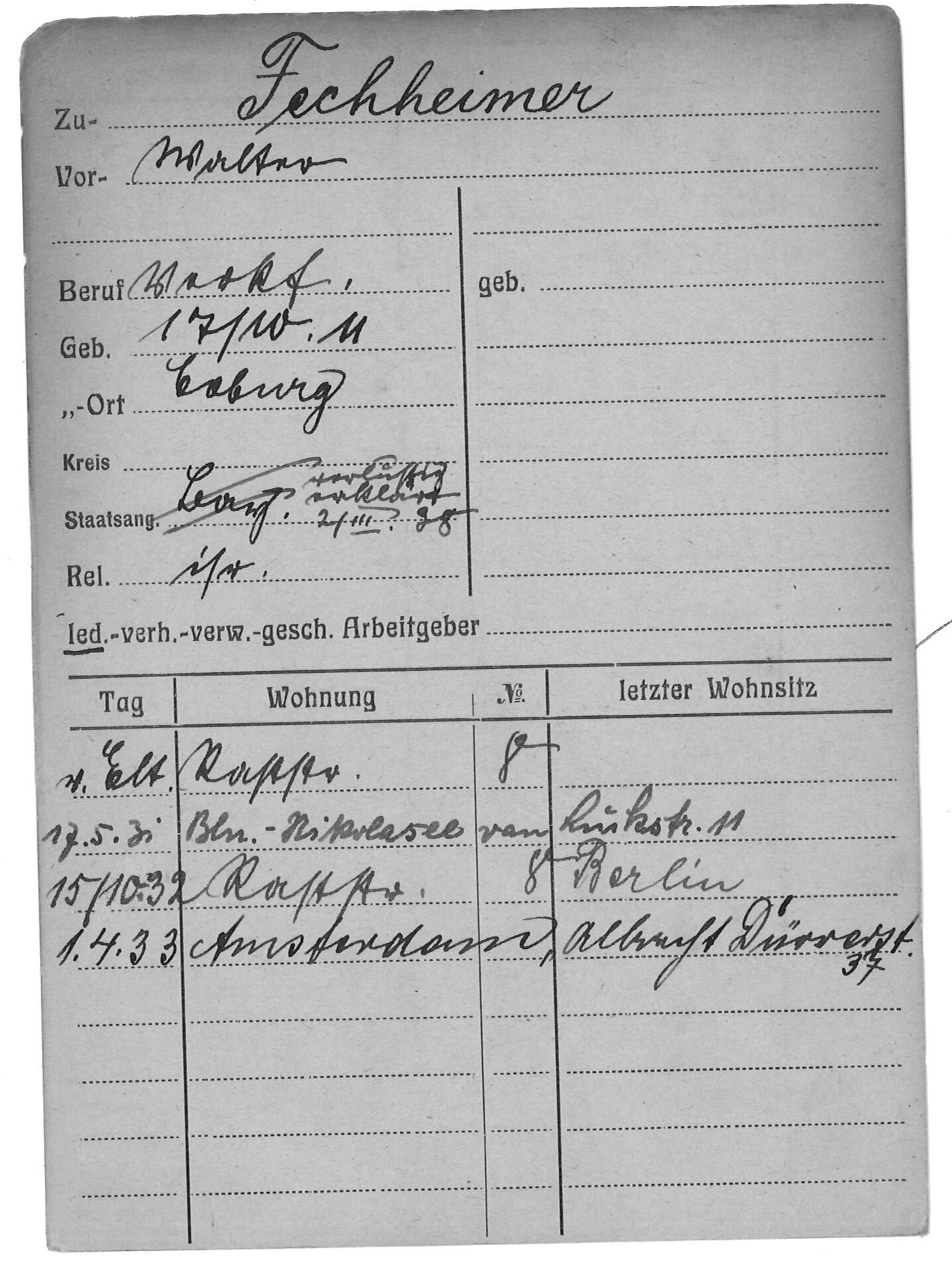 [9] Stadtarchiv Coburg, Einwohnerkartei, Fechheimer, Walter.