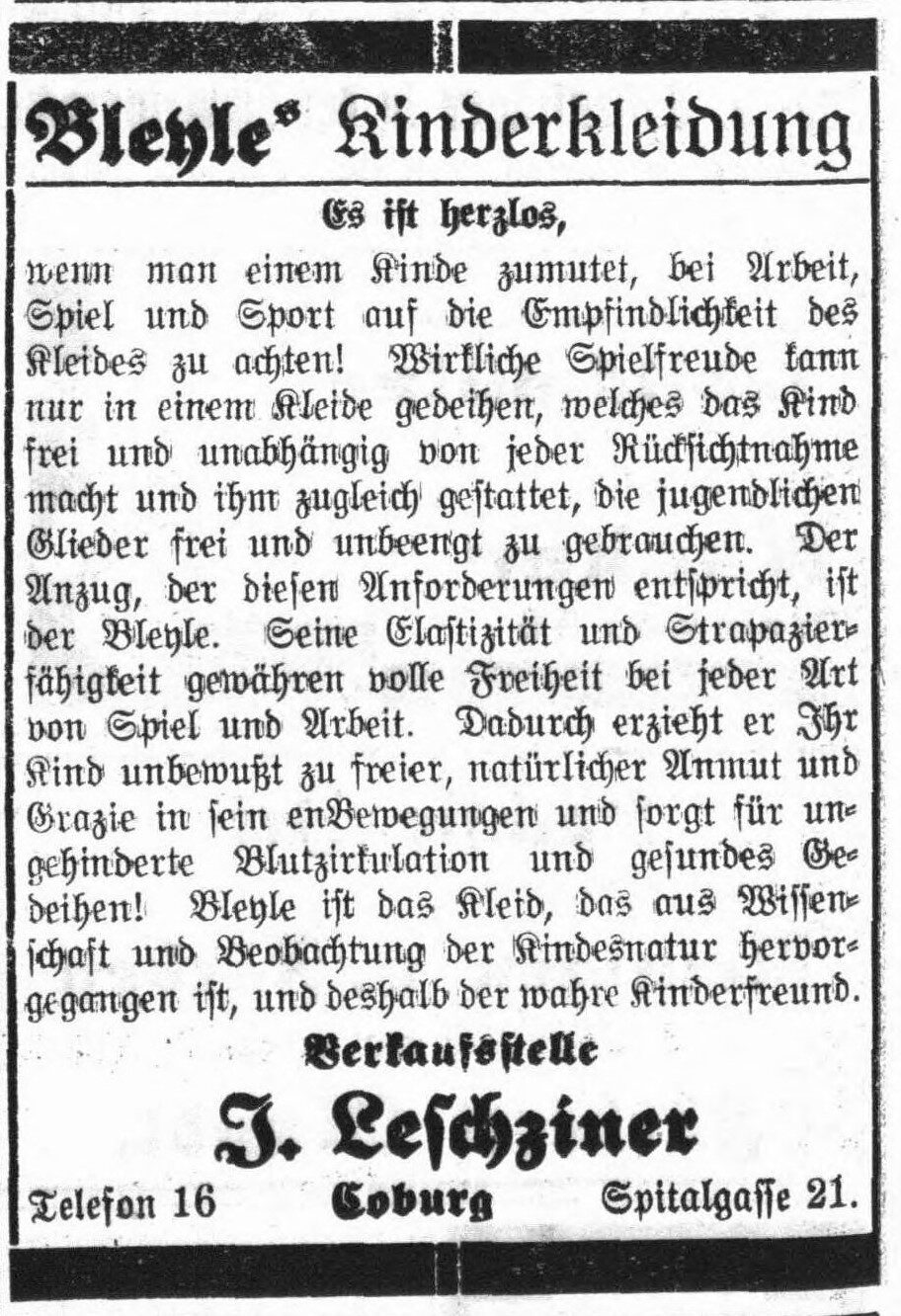 Kurz darauf wurden auch seine Reklameschilder durch Steinwürfe zerstört. Zudem war Sandler von den ersten rechtlichen Schikanen gegenüber jüdischen Händlern betroffen. Bereits kurz nach dem Gewinn einer absoluten Mehrheit im Coburger Stadtrat durch die Nationalsozialisten im Jahr 1929, wurde eine Warenhaussteuer sowie eine zusätzliche Steuer „zum Schutz der kleinen Geschäftsleute“ eingeführt, die besonders das Kaufhaus Leschziner in der Spitalgasse Nr. 21 finanziell belastete.[16]
