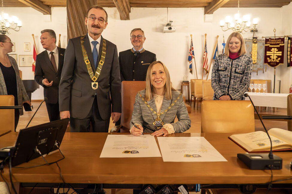 Seit 40 Jahren verbindet die Stadt Coburg und die Isle of Wight eine lebendige Freundschaft. Grund, gemeinsam zu feiern. Im Frühling besuchte eine Delegation aus Coburg die Isle of Wight und nun waren die Briten zu Besuch in der Vestestadt. Bei dieser Gelegenheit trugen sich Councillor Claire Chritchison und andere Mitglieder der Delegation in das Goldene Buch der Stadt Coburg ein.