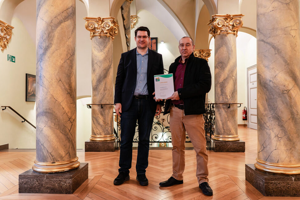 Das Bayerische Staatsministerium für Umwelt und Verbraucherschutz hat die Firma BuddyMats aus Coburg für die Teilnahme am Umwelt- und Klimapakt Bayern ausgezeichnet. Oberbürgermeister Dominik Sauerteig übergab die Urkunde samt Plakette im Rathaus in Coburg. „Der aktive Beitrag zum Klimaschutz verdient eine Auszeichnung“, so OB Dominik Sauerteig. „Sie zeigen mit ihrem Unternehmen Verantwortung für unsere Umwelt. Daran können sich noch viele ein Beispiel nehmen.“