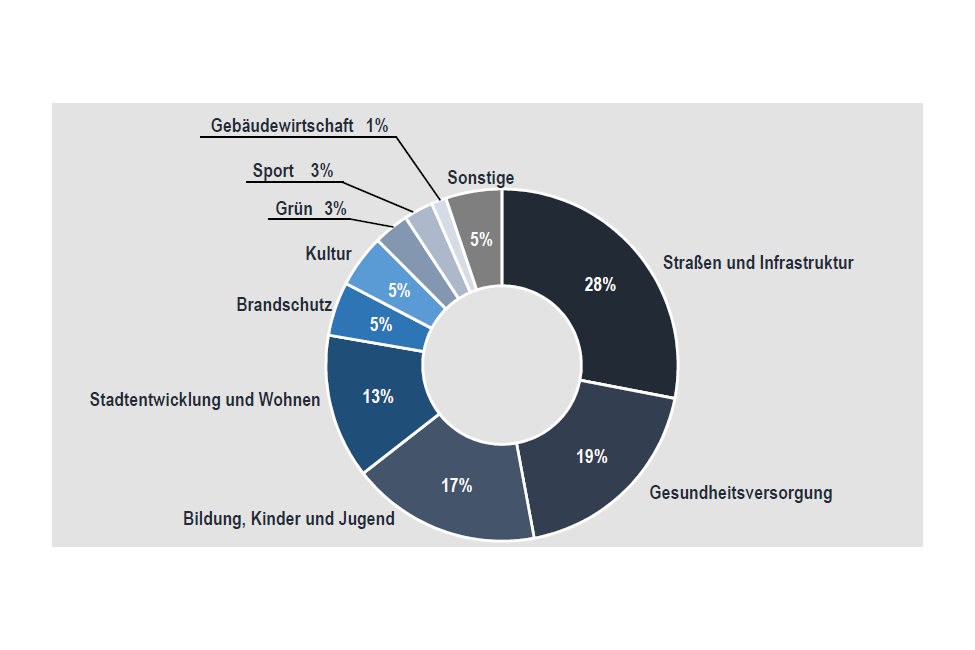 Ein Schwerpunkt der Investitionen bilden in den kommenden drei Jahren die Bereiche Bildung, Kinder und Jugend sowie die Gesundheitsversorgung. Auf die Gesundheitsversorgung entfallen 19 Prozent der geplanten Investitionen. Das größte Projekt ist hier der Neubau eines Klinikums. Für diesen sind für die kommenden drei Jahre rund 24 Millionen Euro eingeplant. Kosten für dieses Projekt werden aber auch über das Jahr 2027 hinaus anfallen. Nach bisherigen Plänen wird der Freistaat Bayern den größten Teil der Baukosten übernehmen.