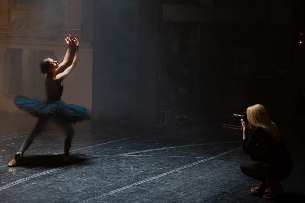 Die Ornamente glänzen im goldenen Licht. Im Schein der Scheinwerfer stehen drei Frauen: Sängerin Maria Radoeva, Tänzerin Claudia Czyz und Fotografin Xiomara Bender. Ein Werbedreh für einen Kamerahersteller hat sie nach Coburg gebracht, denn das Große Haus des Landestheaters ist die perfekte Kulisse für das Thema Kulturfotografie.