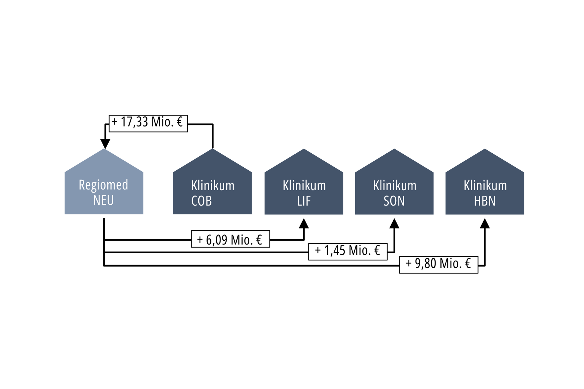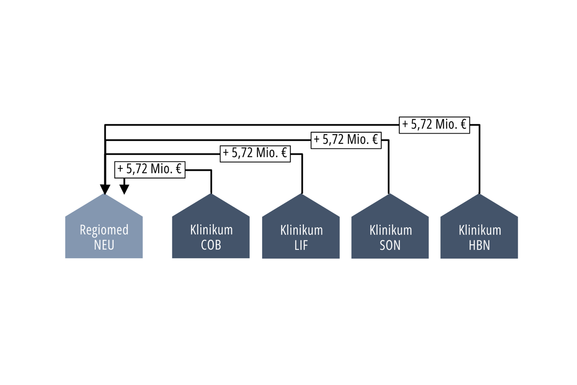 Die Trennung von Regiomed nach dem vorgelegten Plan hätte für die Stadt Coburg und die Gemeinden im Landkreis liquidiätswirksame Maßnahmen von rund 40 Millionen Euro bedeutet. Die Übernahme des Defizits für 2024 mit prognostizierten 18,5 Millionen Eure wäre noch hinzugekommen. Außerdem sei völlig unbeachtet geblieben, dass das Klinikum Coburg von 2013 bis 2023 schwarze Zahlen geschrieben habe und der Krankenhausverband freiwillig bis zu 15 Millionen für Sanierungsmaßnahmen gezahlt habe und werde.
