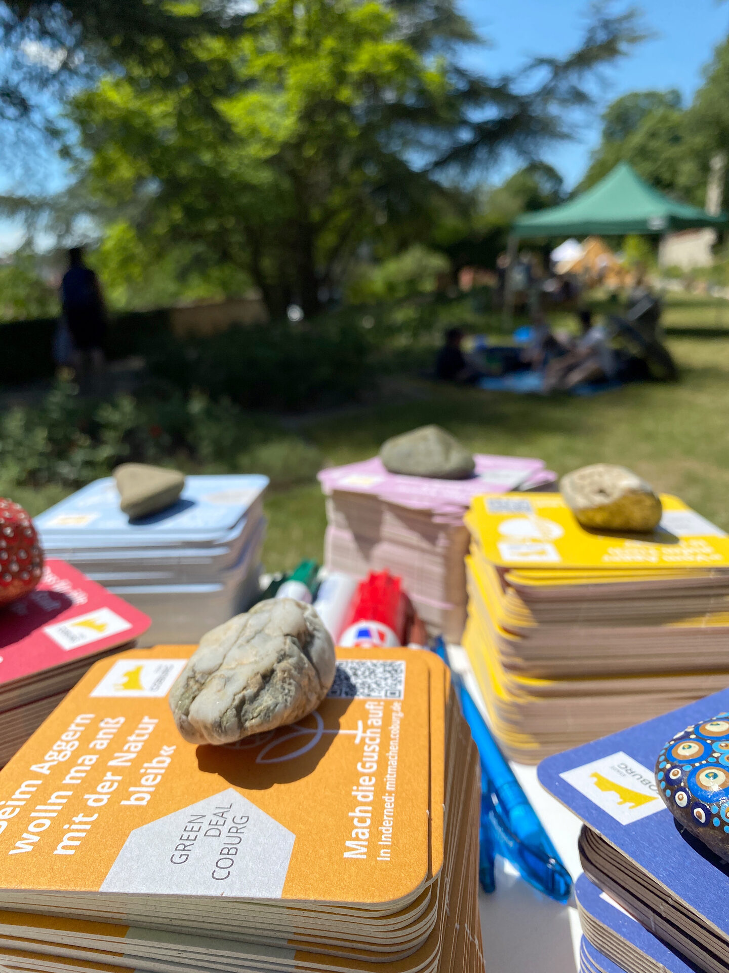 Gemeinsam eine schöne Zeit zu verbringen, war aber nur ein Ziel des Green Deal-Teams. Sie wollten die Ideen der Bürger*innen für ein lebens- und liebenswertes Coburg. Neben lockeren Gesprächen über Busverkehr, Solarförderung, Grünflächen und vieles mehr, landeten über 30 Ideen und Anregungen in den Vorschlagsboxen.
