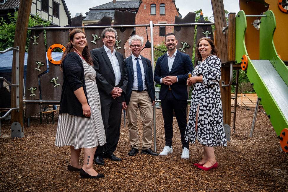 Draußen gibt es einen tollen Spielplatz zum Toben, drinnen ganz viele Räume für Familien: Der Familienstützpunkt im Familienzentrum vereint zahlreiche Angebote der Familienbildung verschiedener Träger. Am Freitag wurde Eröffnung gefeiert.