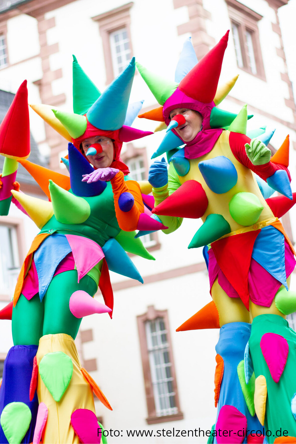 Schon von weitem nicht zu übersehen: Die riesigen Konfettis vom Stelzentheater CIRCOLO machen mächtig Wirbel! Charmant, frech, albern oder wild, man weiß nie, was als nächstes kommt. Doch eins ist sicher: Mit ihrem herrlichen Unsinn bringen sie alle zum Lachen.