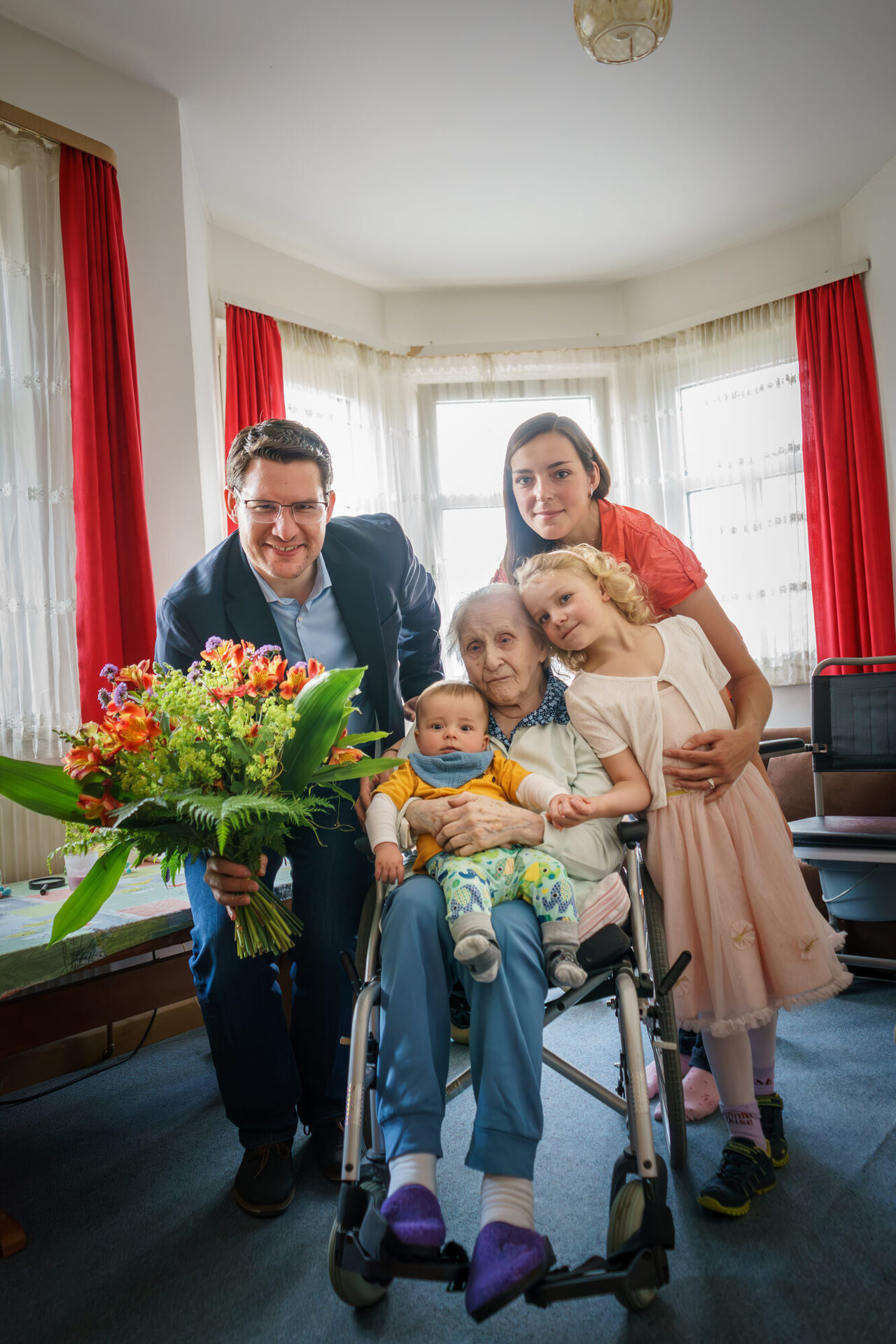 Mit einem Puzzel vor sich saß Ellas Bähring an ihrem Küchentisch und freute sich sichtlich über den Besuch von Oberbürgermeister Dominik Sauerteig. Mit ihren 102 Jahren wohnt sie immernoch in ihrer Wohnung in der Innenstadt, dort lässt sich ihr Alltag mit Hilfe auch gut bewältigen.