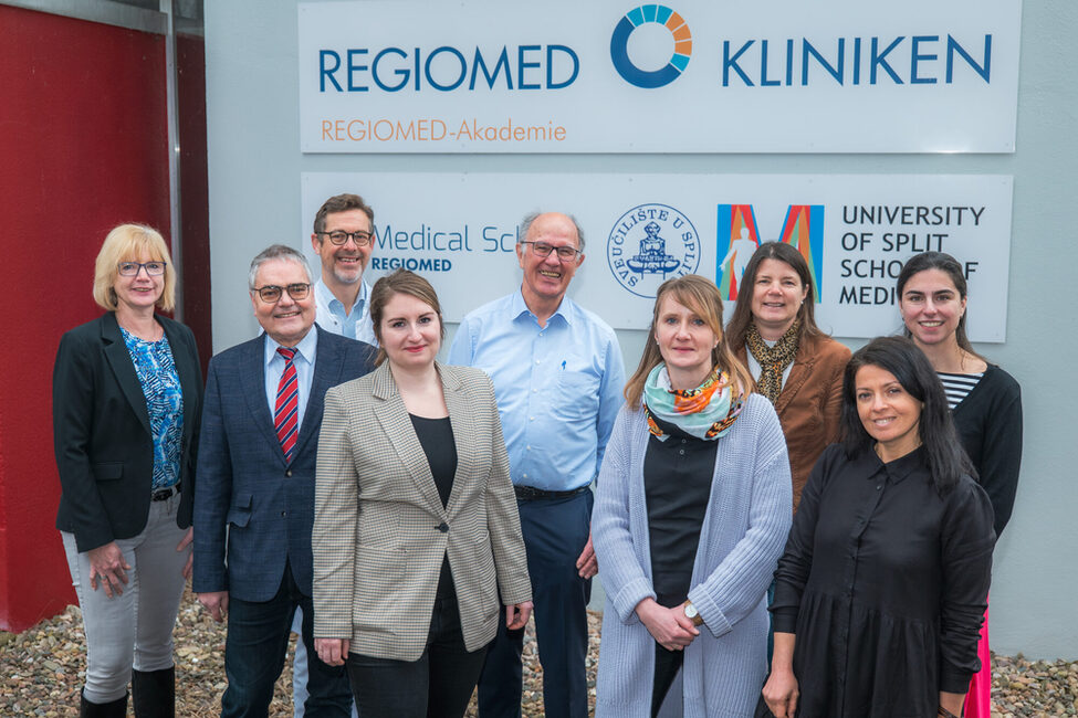 Die Regiomed Kliniken GmbH hat auf den Ärztemangel mit der Schaffung der Medical School reagiert. Hier werden junge Menschen zuerst drei Jahre an der School of Medicine der Universität Split ausgebildet. Im vierten Studienjahr kehren die Medizinstudent*innen für drei weitere Jahre nach Coburg zurück und durchlaufen den klinischen Teil des Studiums (Studienjahre 4 bis 6) an der Medical School Regiomed. Dieser Teil des Studiums zeichnet sich besonders durch hohe Praxisorientierung und intensive Betreuung in kleinen Studiengruppen aus, die den persönlichen Kontakt zu den Dozent*innen in Coburg ermöglichen. Anschließend machen die jungen Mediziner*innen in der Regel ihre Facharztausbildung an einer der Regiomed-Kliniken der Region.