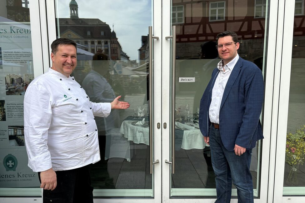 Oberbürgermeister Dominik Sauerteig geht regelmäßig auf „Tour“ und besucht Coburger Geschäftsinhaber oder Gastronomen, um mit ihnen das Gespräch zu suchen. Diesmal war der OB beim Aachener und beim Goldenen Kreuz. Die Gespräche mit den Geschäftsführern Uwe Sonntag (Aachener) und Markus Zimmer (Goldenes Kreuz) waren sehr anregend. Beide hatten Wünsche an die Stadtverwaltung, freuten sich aber auch über deren umsichtiges Vorgehen.