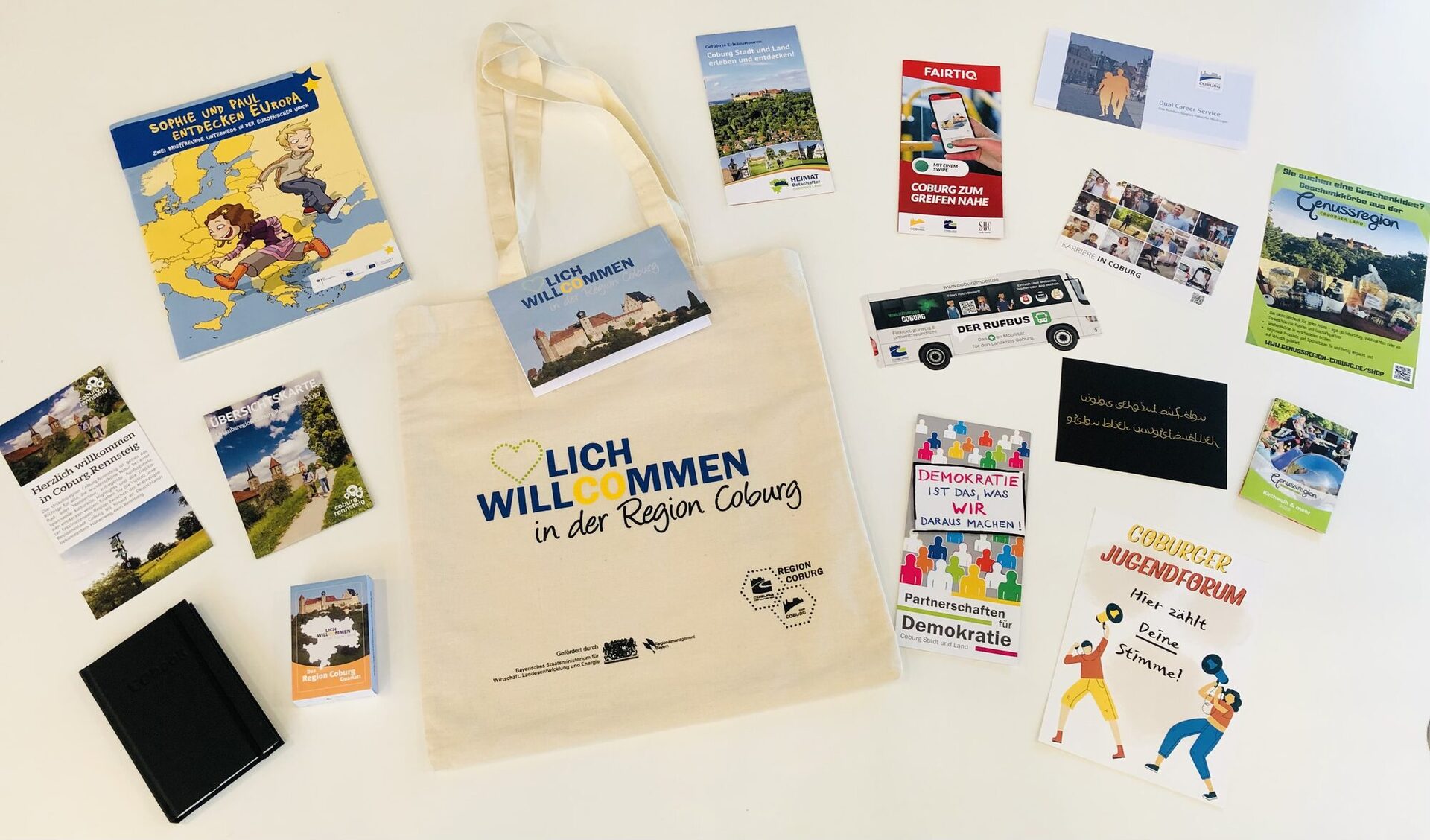 Wer seinen Lebensmittelpunkt in die Stadt oder den Landkreis Coburg verlegt, wird seit diesem Monat bei seinem Gang ins Bürgerbüro oder Einwohnermeldeamt mit einer Willkommenstasche begrüßt. Sie enthält nützliche Informationen über den neuen Wohnort und soll helfen, die Vestestadt und den Landkreis genauer kennenzulernen. Der Stoffbeutel enthält unter anderem Hinweise zur Mobilität in der Region (Rufbus), einen Kirchweih- und Veranstaltungskalender für die Genussregion Coburger Land, einen Gutschein für den öffentlichen Nahverkehr oder eine Europabroschüre für Kinder. Sehr beliebt ist ein Quartettspiel, das eigens für Neubürger*innen vom Team des Regionalmanagements konzipiert wurde.