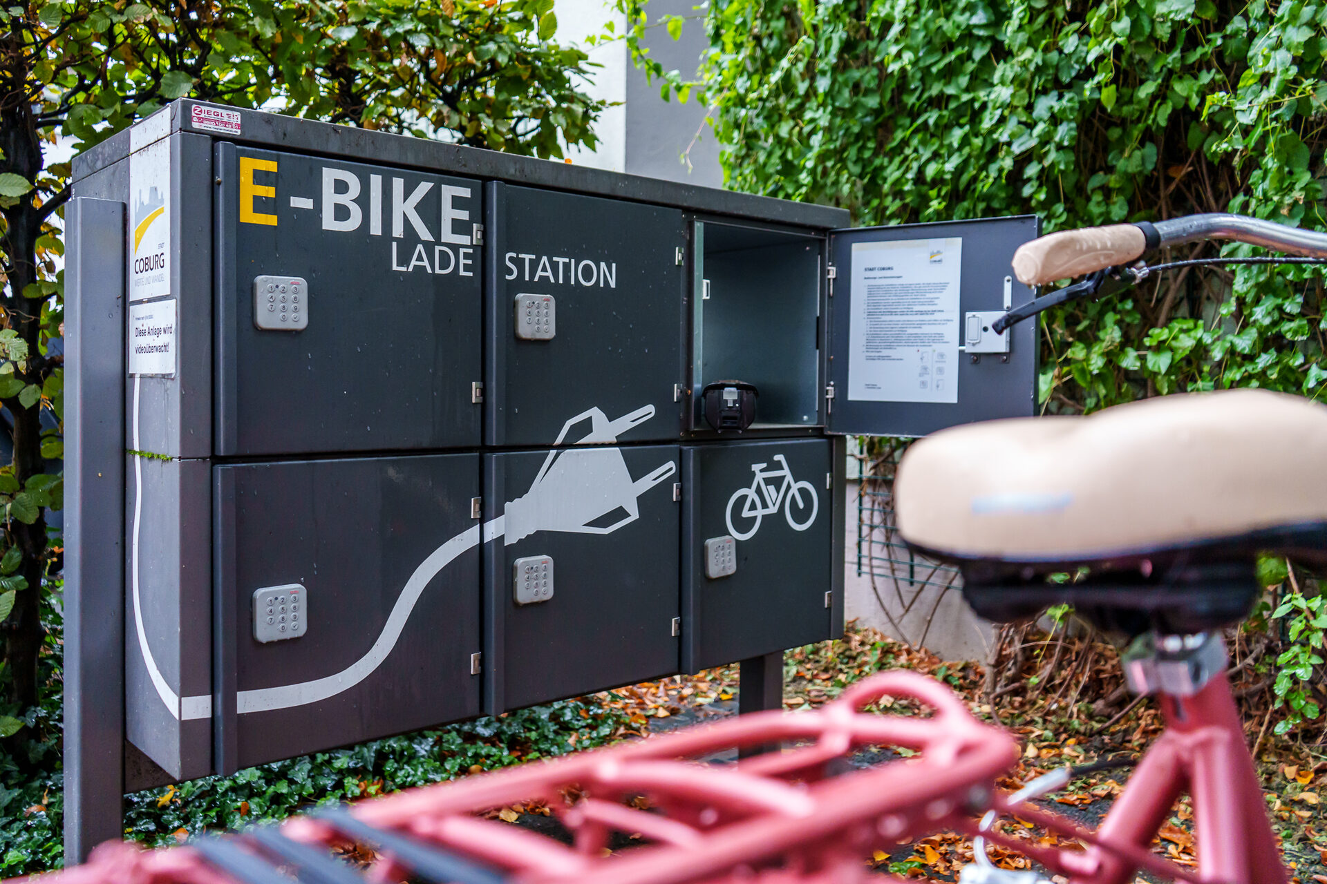 Die E-Bike-Ladestation auf der Mauer am Ende der Nägleinsgasse (Zweiradparkplatz) ist jetzt wieder in Betrieb. Hier können Sie kostenlos Ihren Akku wieder aufladen. In jedem der sechs Schließfächer finden Sie Steckdosen. Dort können Sie Ihr Ladegerät anschließen und Ihren Akku während des Ladens einschließen.