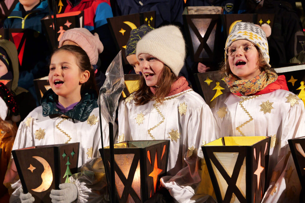 "Das Gefühl der Verbundenheit, das uns gerade in der Adventszeit erfüllt - die Vorfreude auf Weihnachten ist etwas ganz Besonderes und Einzigartiges. Das kann uns Nichts und Niemand nehmen", rief Christkind Marie Martin den vielen Coburgerinnen und Coburger zu, die zur Eröffnung des Weihnachtsmarktes gekommen waren. In ihrem Prolog gestand sie ein, dass es angesichts der Krisen heuer sicher nicht für alle leicht sein werde, die Weihnachtszeit zu genießen: "Aber dennoch dürfen und wollen wir die positiven Aspekte nicht vergessen. Alleine die Tatsache, dass ich euch dieses Jahr alle wieder hier auf dem Weihnachtsmarkt begrüßen kann, ist mir eine riesige Freude. Diese Freude und das magische Gefühl der Weihnachtszeit kann uns Nichts und Niemand nehmen." Zuvor hatte sie den Chor der Grundschule Coburg-Neuses auf den Marktplatz geführt. Zusammen mit dem Bezirksposaunenchor haben die Kinder weihnachtliche Stimmung auf den Marktplatz gezaubert.