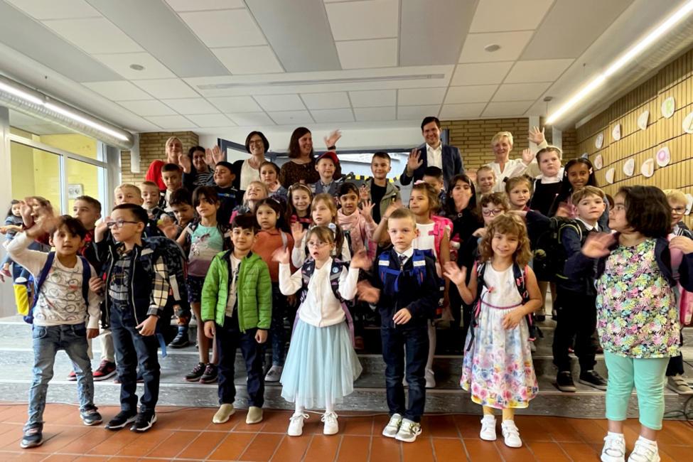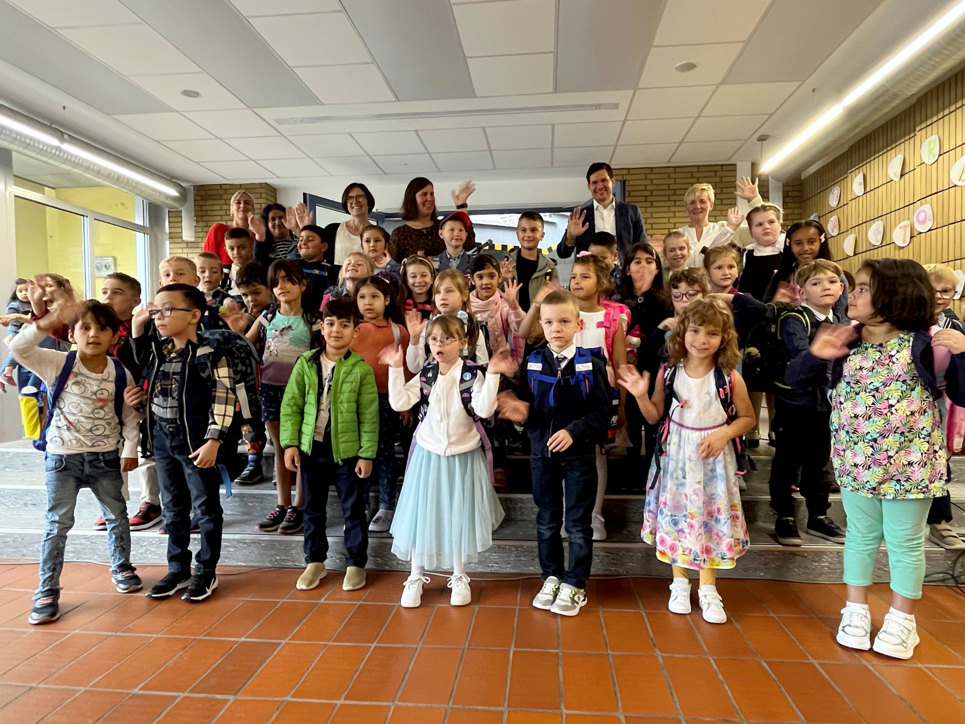Aufstehen, frühstücken und Schulranzen schnappen - die Sommerferien sind zu Ende. Für viele Mädchen und Jungen ging es heute auch zum ersten Mal in die Schule. Oberbürgermeister Dominik Sauerteig wollte den ABC-Schütz*innen einen guten Start wünschen. Stellvertretend für alle 1. Klassen hat er am Morgen die Melchior-Franck-Schule besucht. Für alle Erstklässlerinnen und Erstklässler hatte der Oberbürgermeister Obstkörbe dabei.