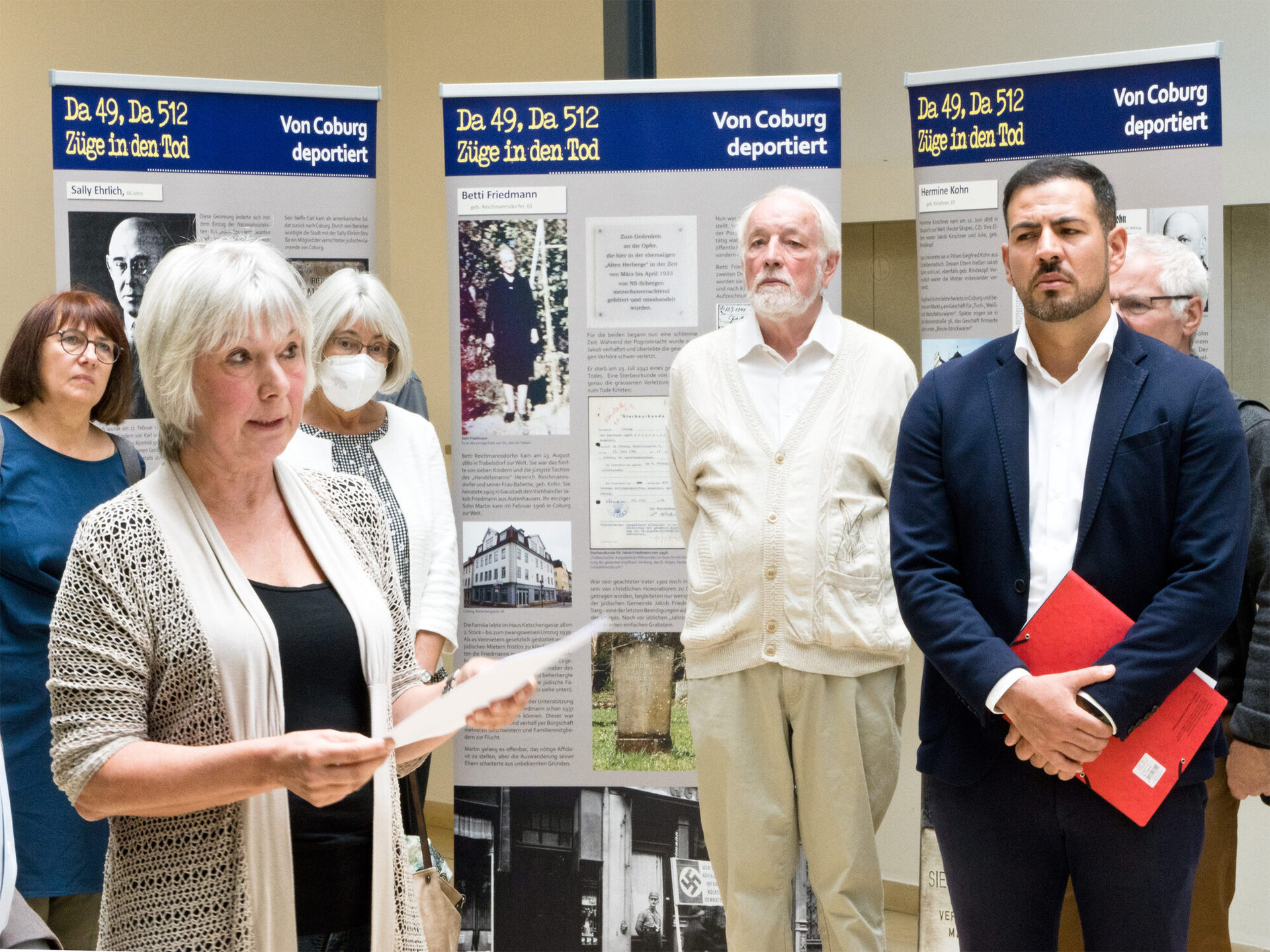 Mit dem Deportationszug Da 512 nach Theresienstadt wurde am 10. September 1942 die Vernichtung der jüdischen Gemeinde Coburgs besiegelt. Betreits vier Monate waren mit dem Transport Da 49 am 25. April 1942 nach Kràsniczyn bei Lublin die anderen jüdischen Gemeinden des westlichen Oberfranken ausgelöscht worden. Eine Ausstellung im Ämtergebäude dokumentiert das Verbrechen und erinnert an die Opfer. Zu den Öffnungszeiten des Ämtergebäudes können Sie die Ausstellung besichtigen.